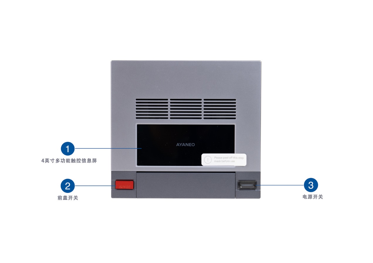 ▲包装盒采用紫色配色,正面印有AM02的图片,左上角型号为AYANEO Retro Mini PC AM02; CPU型号为AMD Ryzen 7 8845HS,内存16GB ,SSD 512GB ▲盒内分上下层设计,上层是说明书 ▲下层是AM02本体及附件,附件全部用盒子分类安放;所有部件都嵌入在海绵中,在运输过程中可以得到很好的保护 ▲USB Type-A to USB Type-C转接头两个;英标插头一个、欧标插头一个、澳洲插头一个 ▲电源适配器采用GaN技术,体积十分小巧,USB-C口最高可以支持20V 5A 100W的输出功率。插头可折叠设计,并支持安装其他标准的插头 ▲一根USB-C线,一根HDMI线以及5颗M.2硬盘安装螺丝 ▲随机附赠了翘片和螺丝刀工具 ▲通过按压红色Open按钮可以弹出前盖,露出前端的IO接口 ▲前端IO接口一览 ▲AM02顶盖一览,中间的信息屏可以使用AYASpace软件控制显示内容,支持触控 ▲AM02背部IO接口一览,功能如图所示。其中7仅能用于供电,无法传输数据 ▲AM02底部做了格栅开孔,用于冷空气进入,可以看到内部的涡轮风扇拆机视频