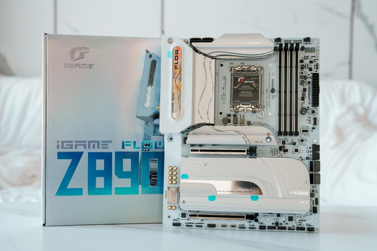 Flow即为流动的意思,整个七彩虹iGame Z890 Flow的设计理念充满了动感,VRM和M.2_1散热片的组合,仿佛清风拂过的梯田,轻柔优雅