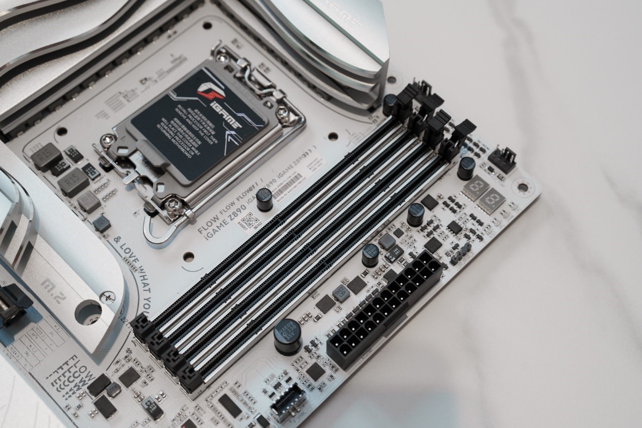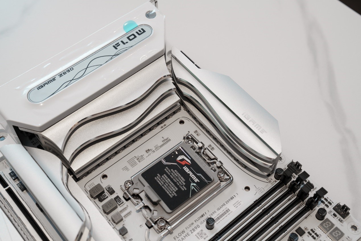 现在市面上的中高端主板,无论是PCB涂装还是散热装甲,大多见棱见角,走硬朗路线。七彩虹iGame Z890 Flow给人耳目一新的感觉