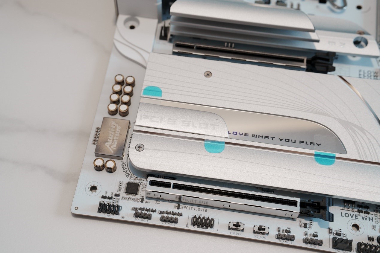 七彩虹给主板上不常用的PCI-E X1接口给了一个防尘盖,和主板装甲融为一体,这个小细节值得表扬