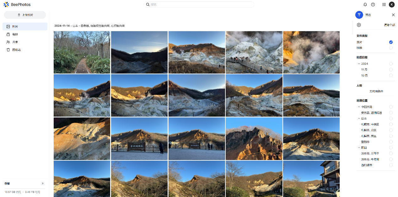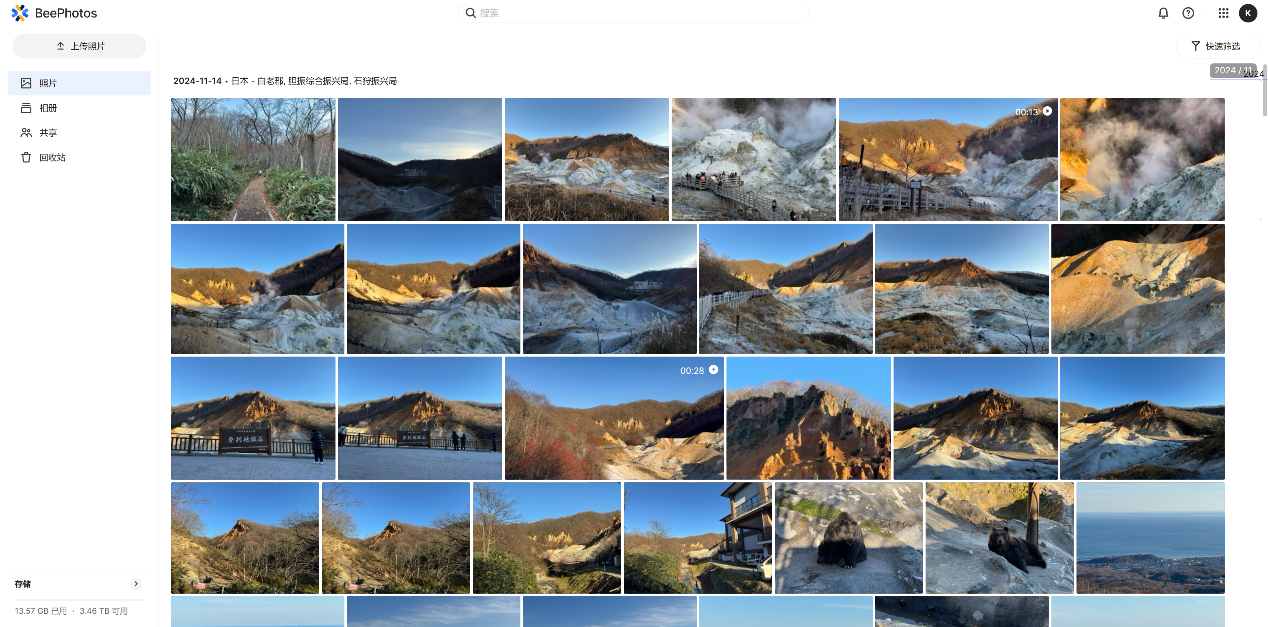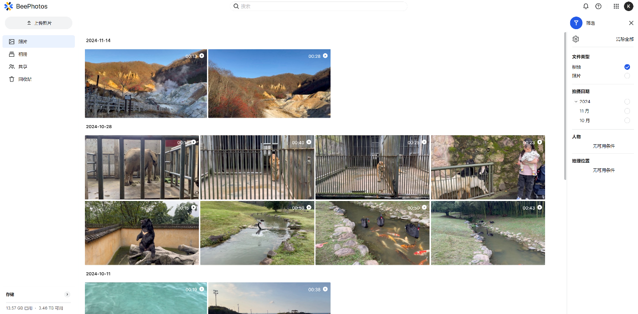 2.智能相册: BeeStation的BeePhotos可以根据时间、地点等信息自动分类照片,让家人更方便地找到想要的照片。