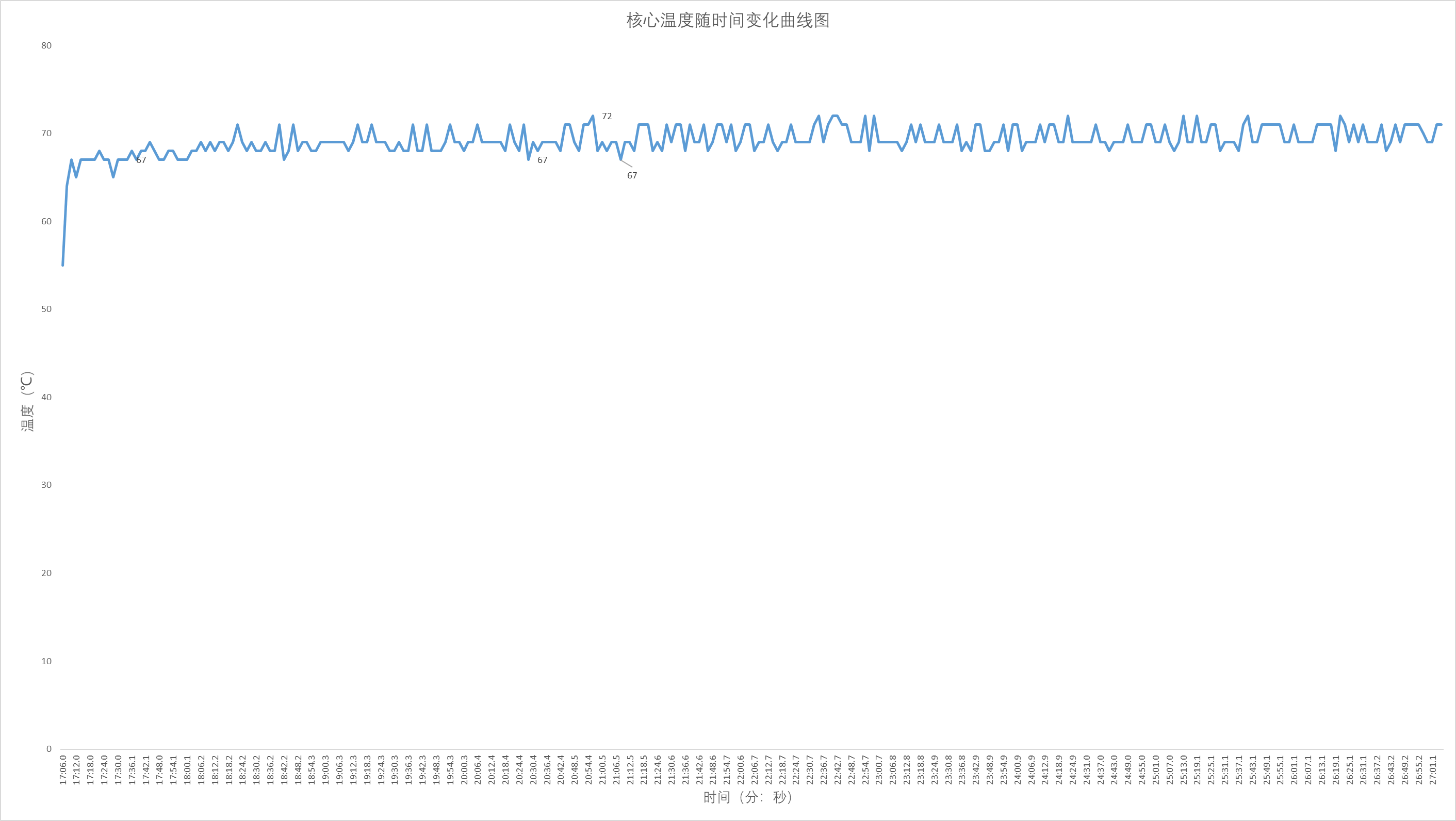 • 从测试结果看,高负载运行条件下,CPU温度可以稳定在72℃以下,散热效果优秀