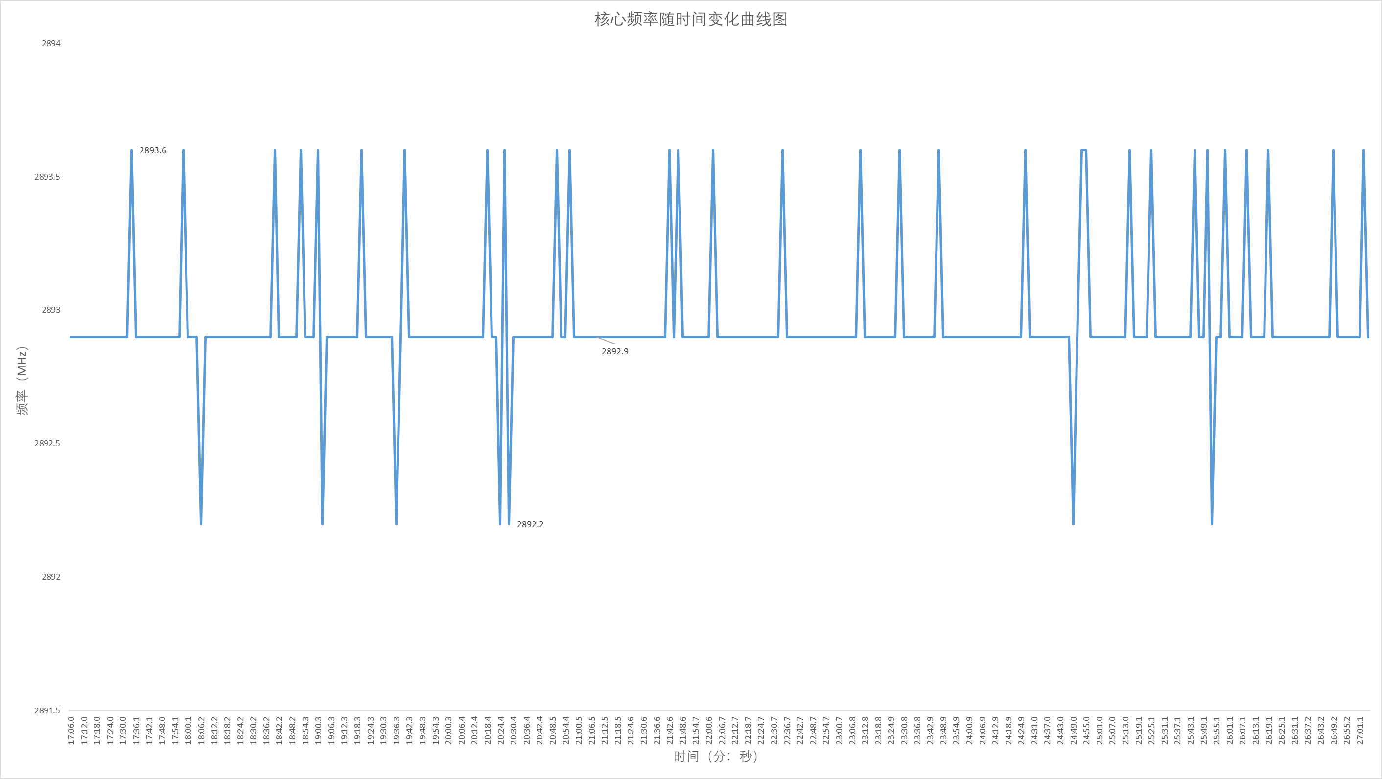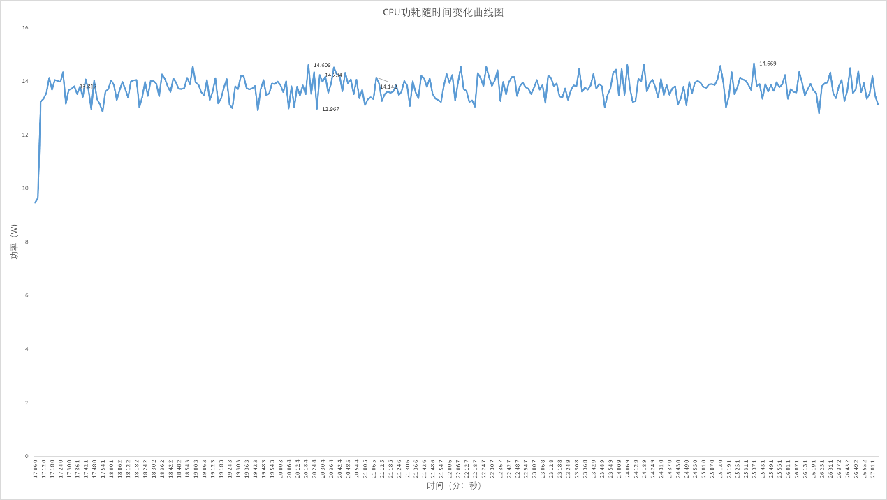 ▲CPU PL1=15W PL2=20W ,Stress FPU 10分钟;使用HWiNFO来记录CPU温度,核心频率以及CPU功耗;整个过程持续10分钟,CPU有触发IA limit,没触发功耗墙,也没有过热降频 ▲CPU PL1=15W PL2=20W ,Stress FPU 10分钟;CPU核心频率维持在2.89GHz左右 ▲CPU PL1=15W PL2=20W ,Stress FPU 10分钟;CPU温度最高不超过72℃ ▲CPU PL1=15W PL2=20W ,Stress FPU 10分钟;CPU功耗最高不超过14.66W,未达到PL1风扇噪音