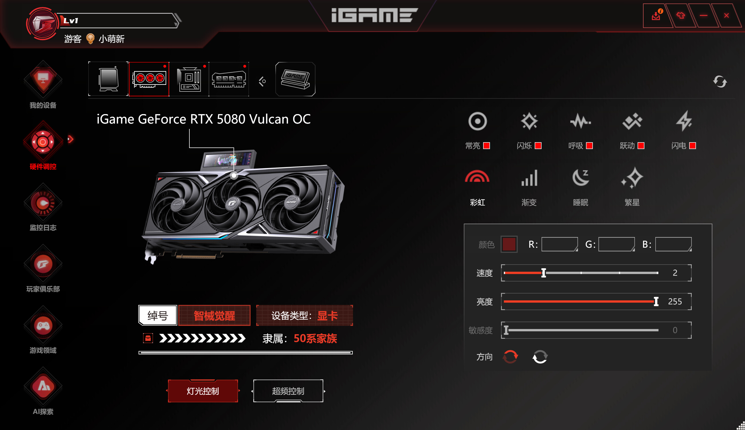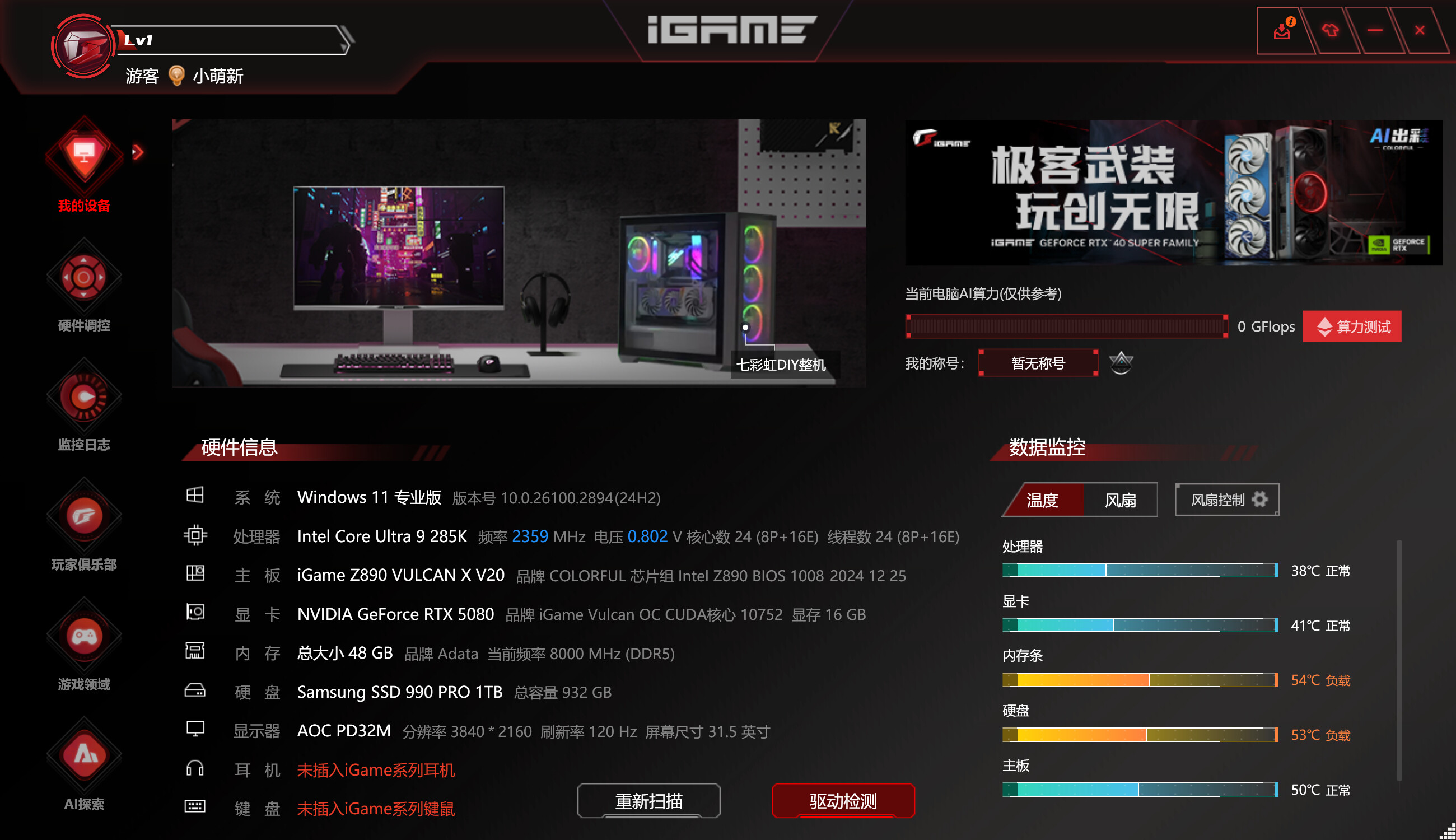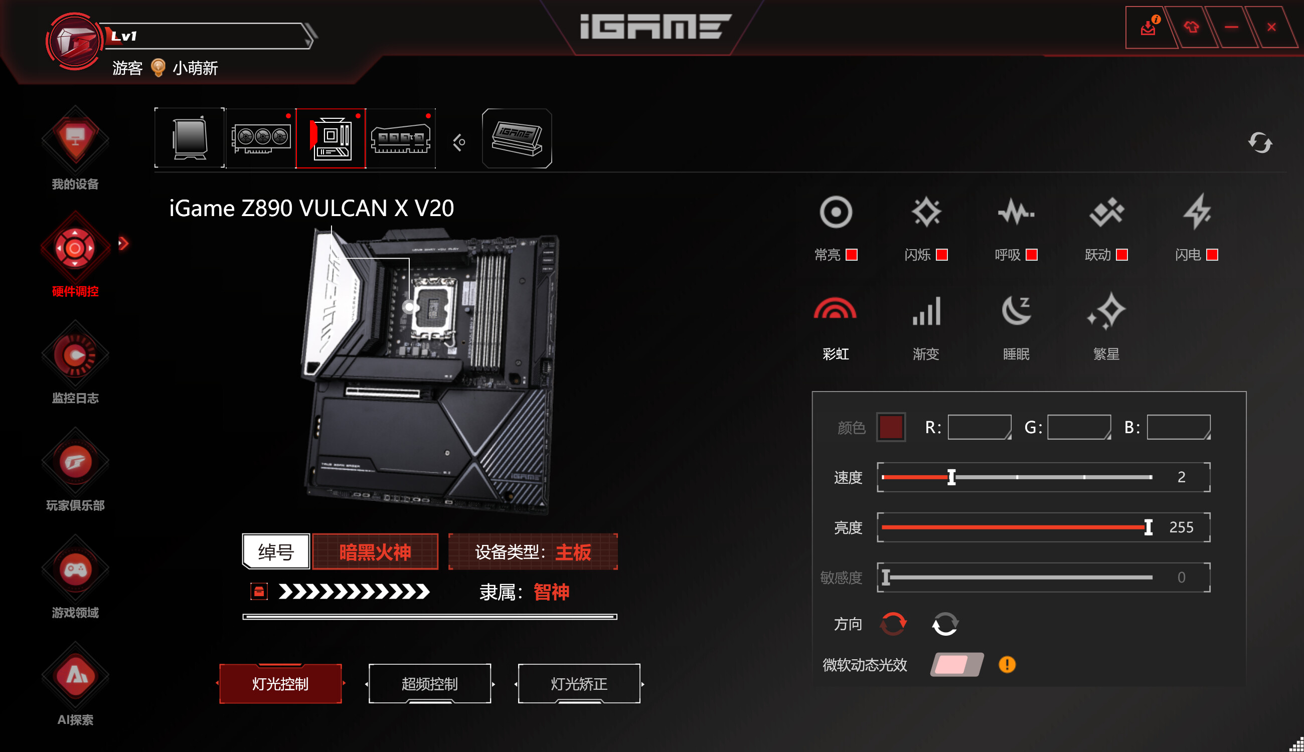 iGameCenter不但可以识别显卡,还支持其他iGame系列产品的设定,比如我这块iGame Z890 Vulcan X V20主板。