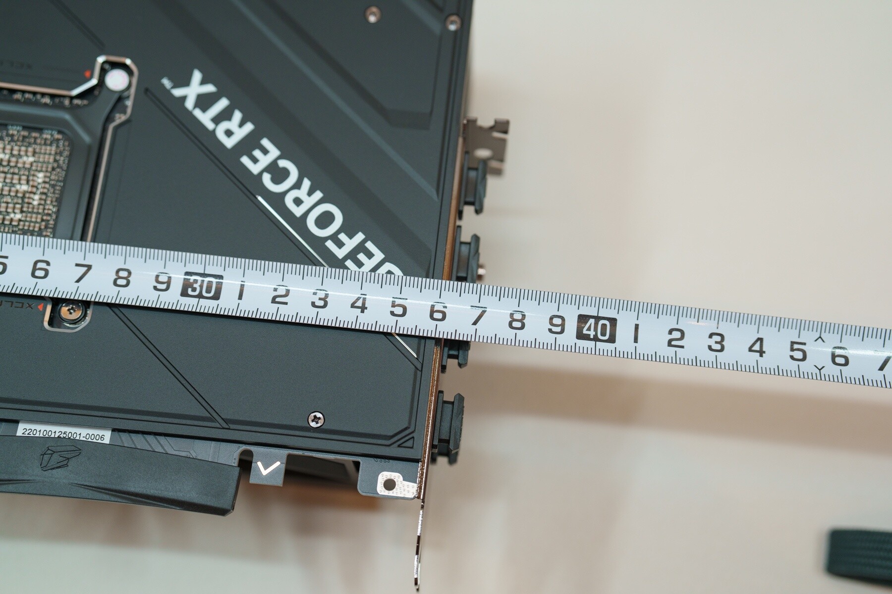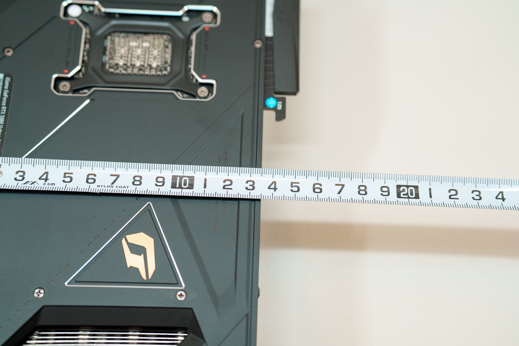 显卡整体长度达到36.0cm(不含挡板),高度13.5cm(不含PCIE接口部分),厚度约7.0cm(3.5槽),比前几天我们看到的七彩虹iGame GeForce RTX 5090 D Advanced 32GB还要大上一点。
