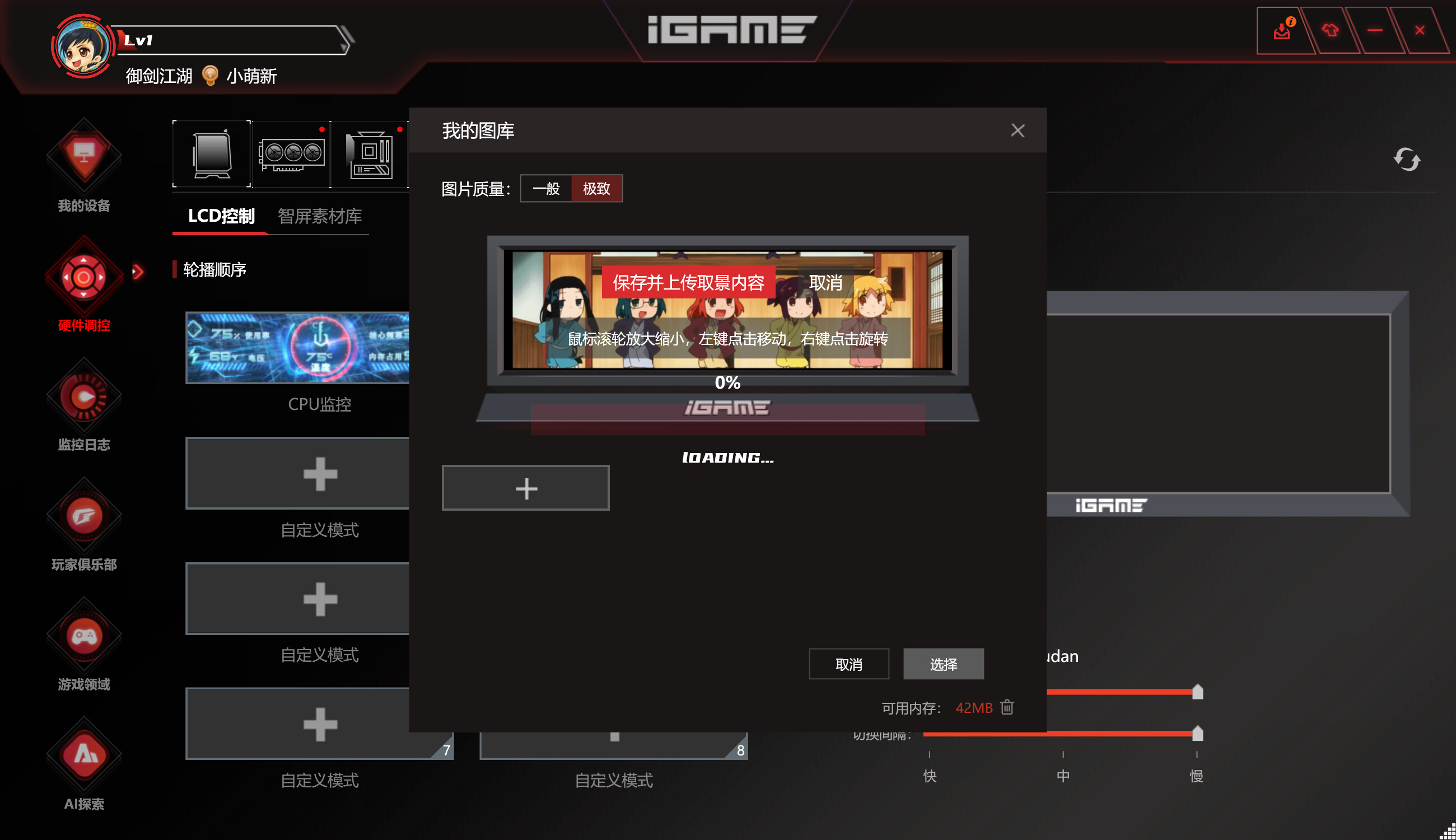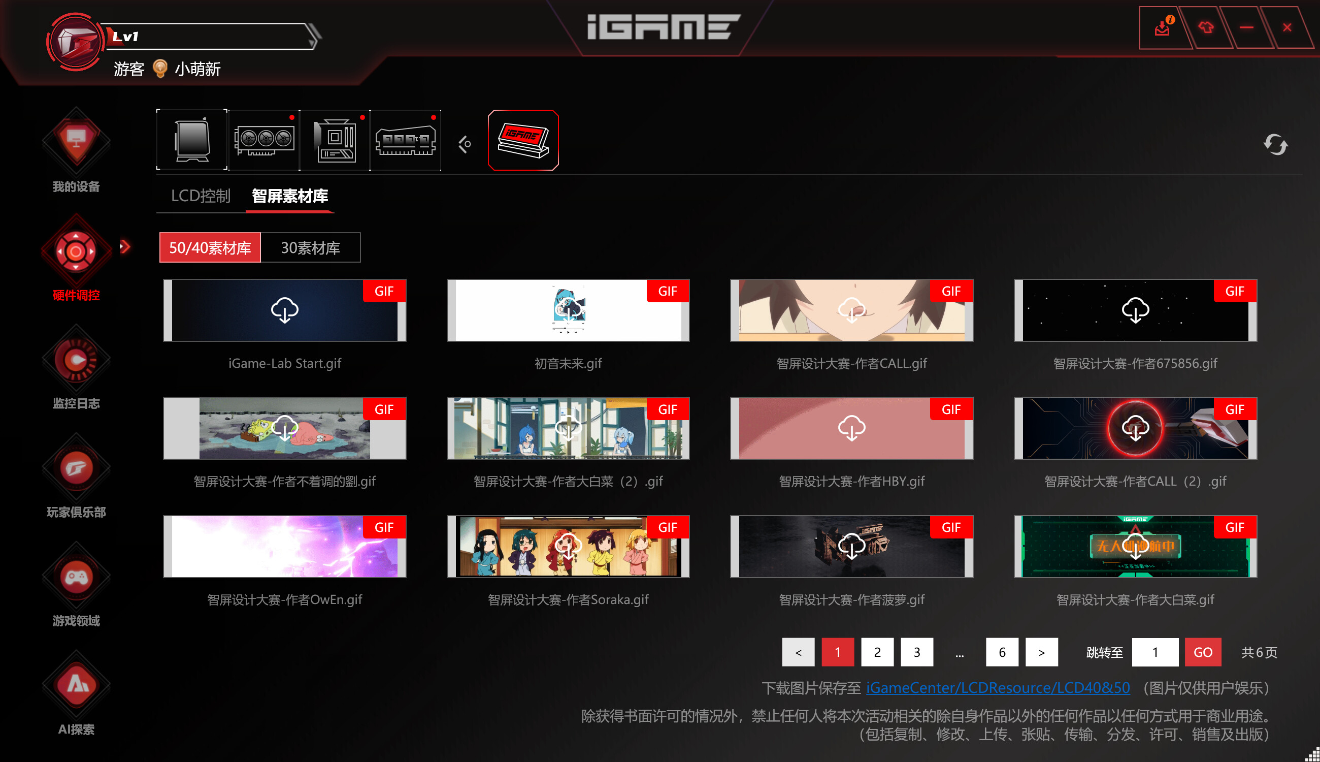 我们可以制作自己的图像上传,也可以在七彩虹的智屏素材库中挑选,目前素材库针对RTX 40/50系列高清屏的素材已经有大几十款,还在陆续增加中。