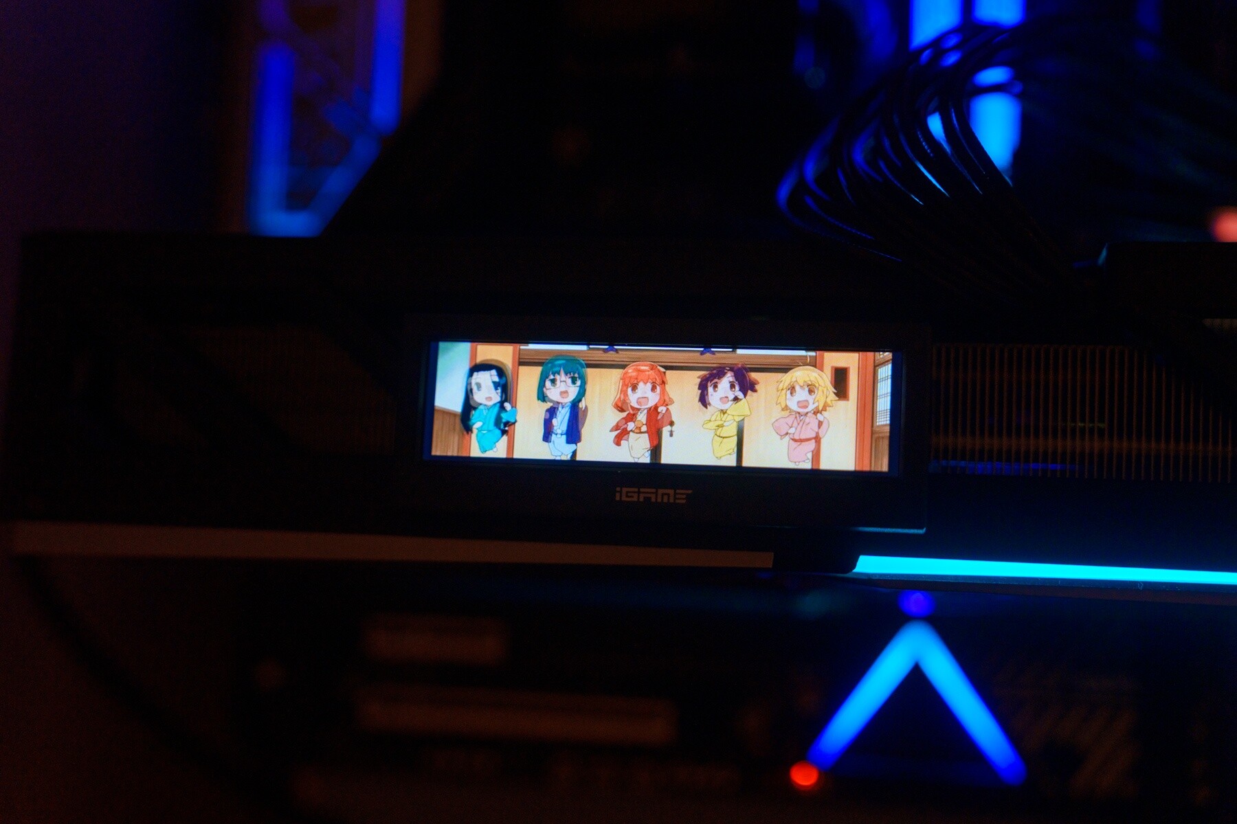 这次iGame GeForce RTX 5080 Vulcan OC的LCD智屏在分辨率上保持和上一代一致,但是在机械结构上进行了升级。