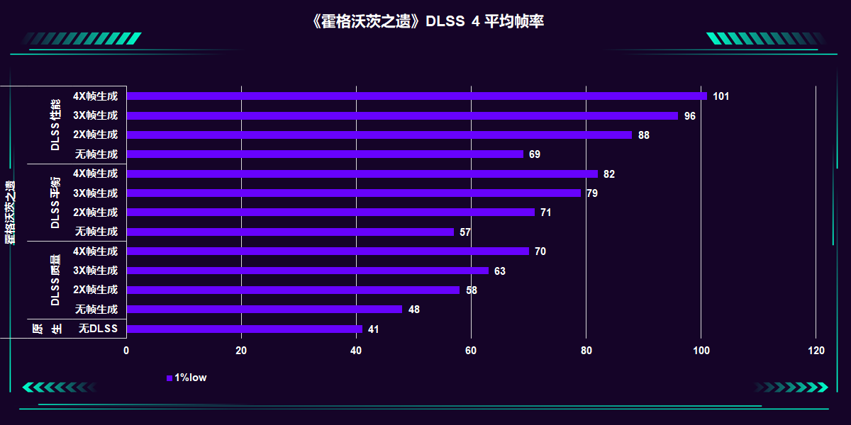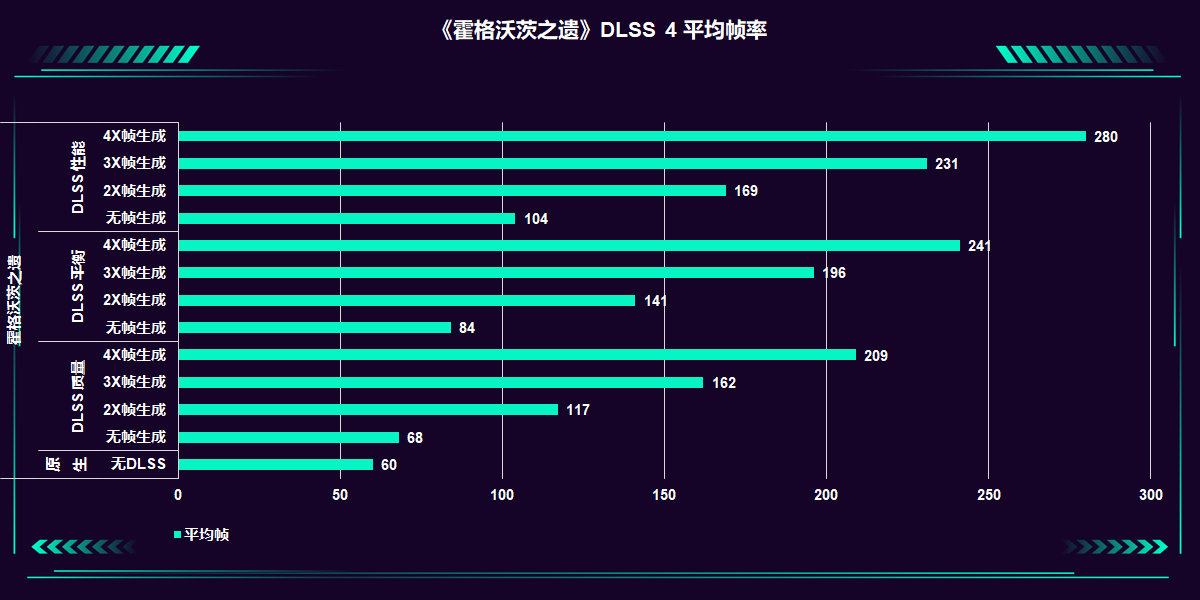在《霍格沃兹之遗》的测试中,开启DLSS 性能模式+4倍多帧生成后,平均帧率由60提升至280帧,提升幅度超过360%,这与之前RTX 5090 D的情况类似。