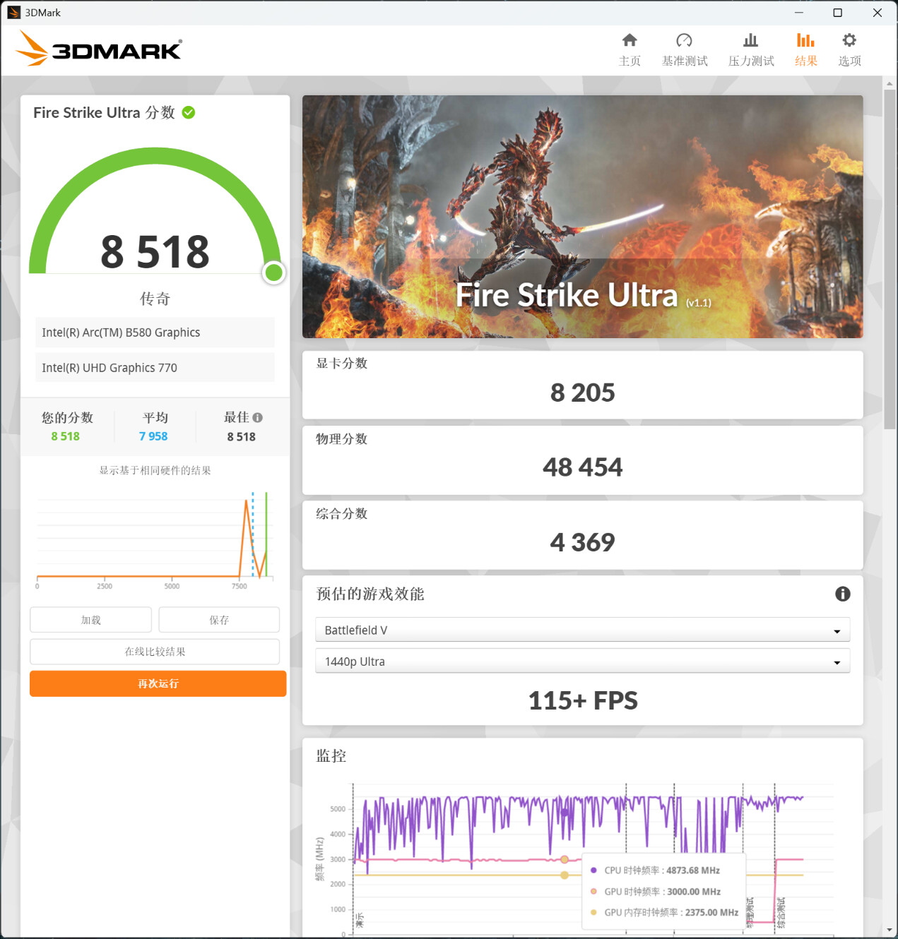 ▲总体来看,提高GPU频率对性能的提升是显著的,特别是在显卡相关的测试项目中。频率提升可能会带来功耗和热量的增加,这可能对系统的稳定性和显卡散热要求提出更高的挑战游戏测试