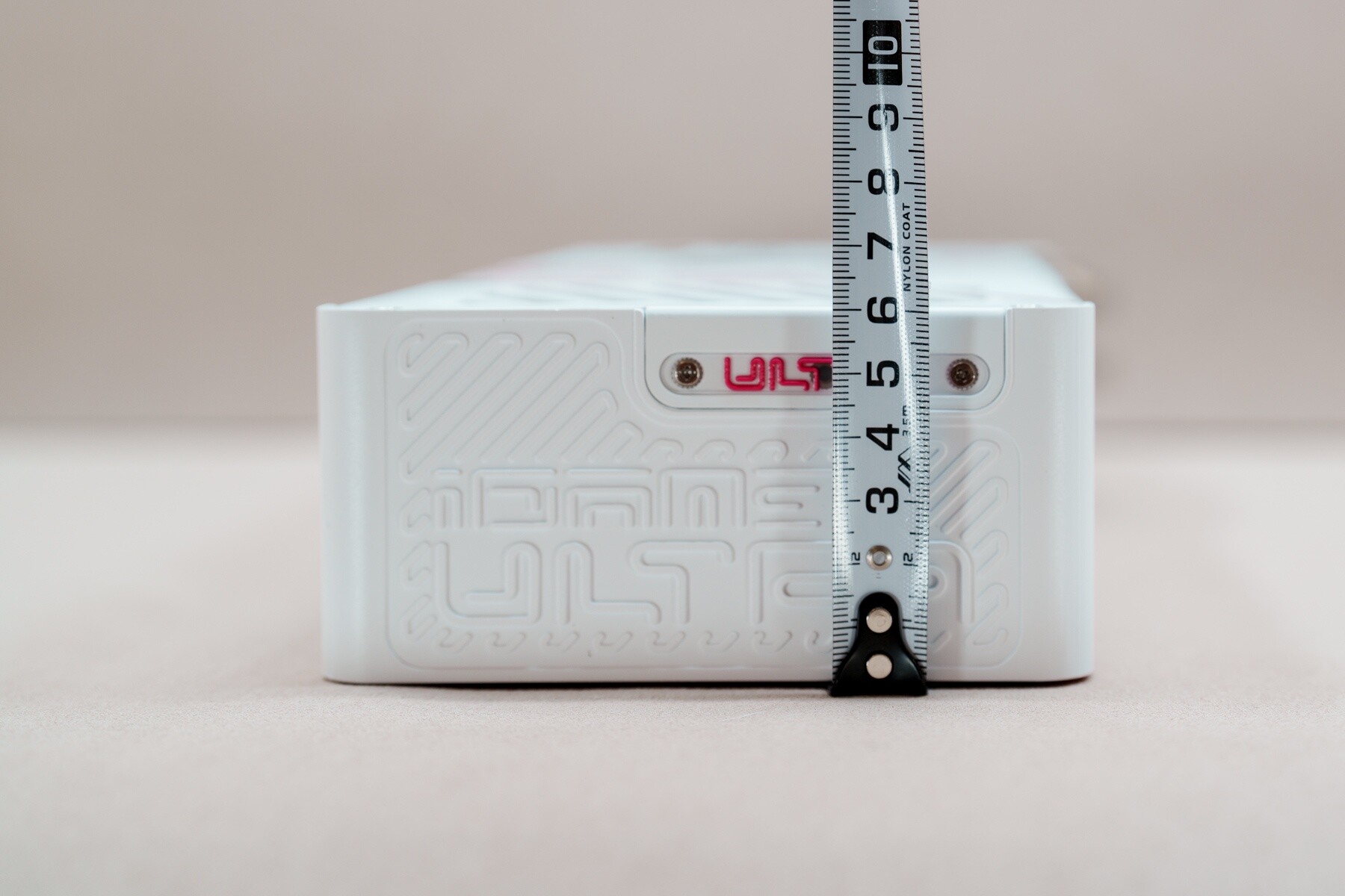 全金属背板上还配有粉色ULTRA的涂鸦,这些涂鸦元素与白色基底和粉色描边相互呼应,营造出一种独特的视觉美感。