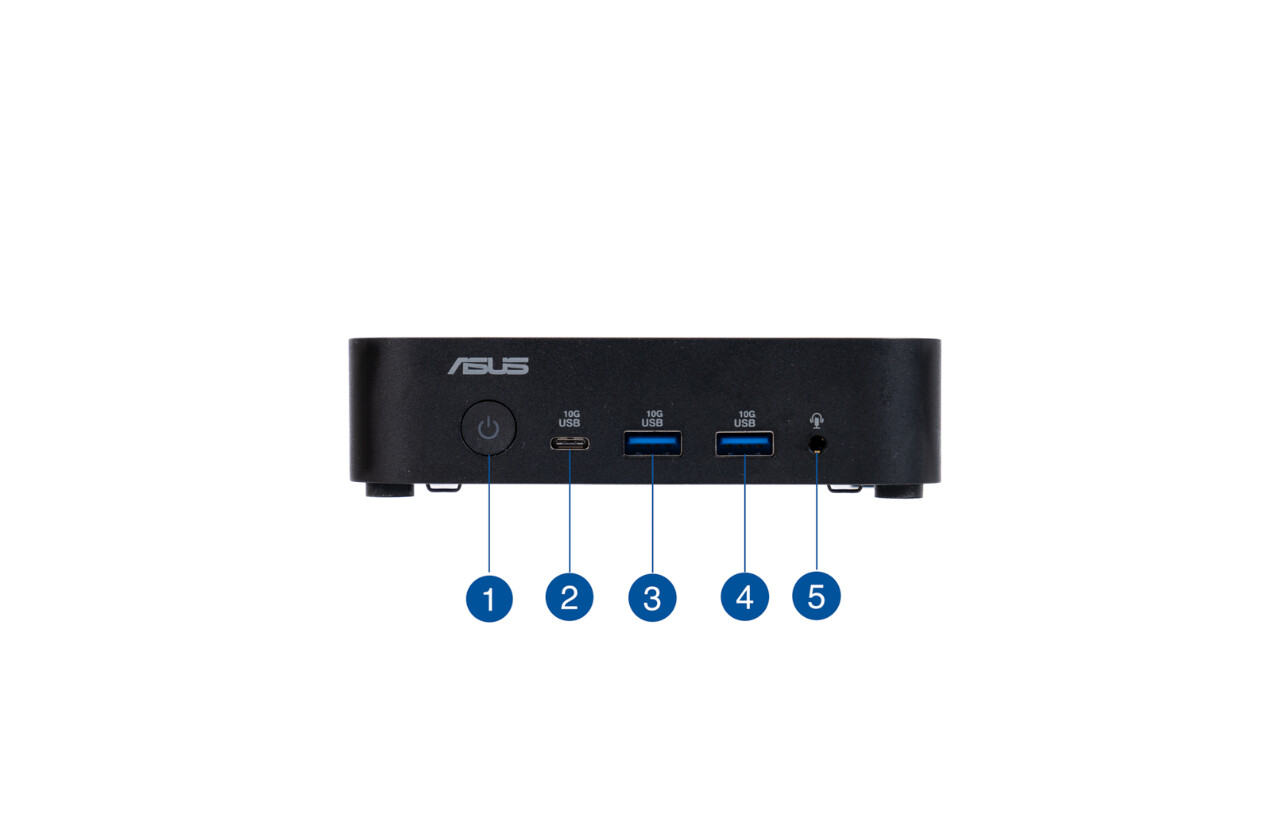 ▲NUC14 Elite前置接口丰富,可以快速连接U盘、耳机等常用设备1.电源按钮
