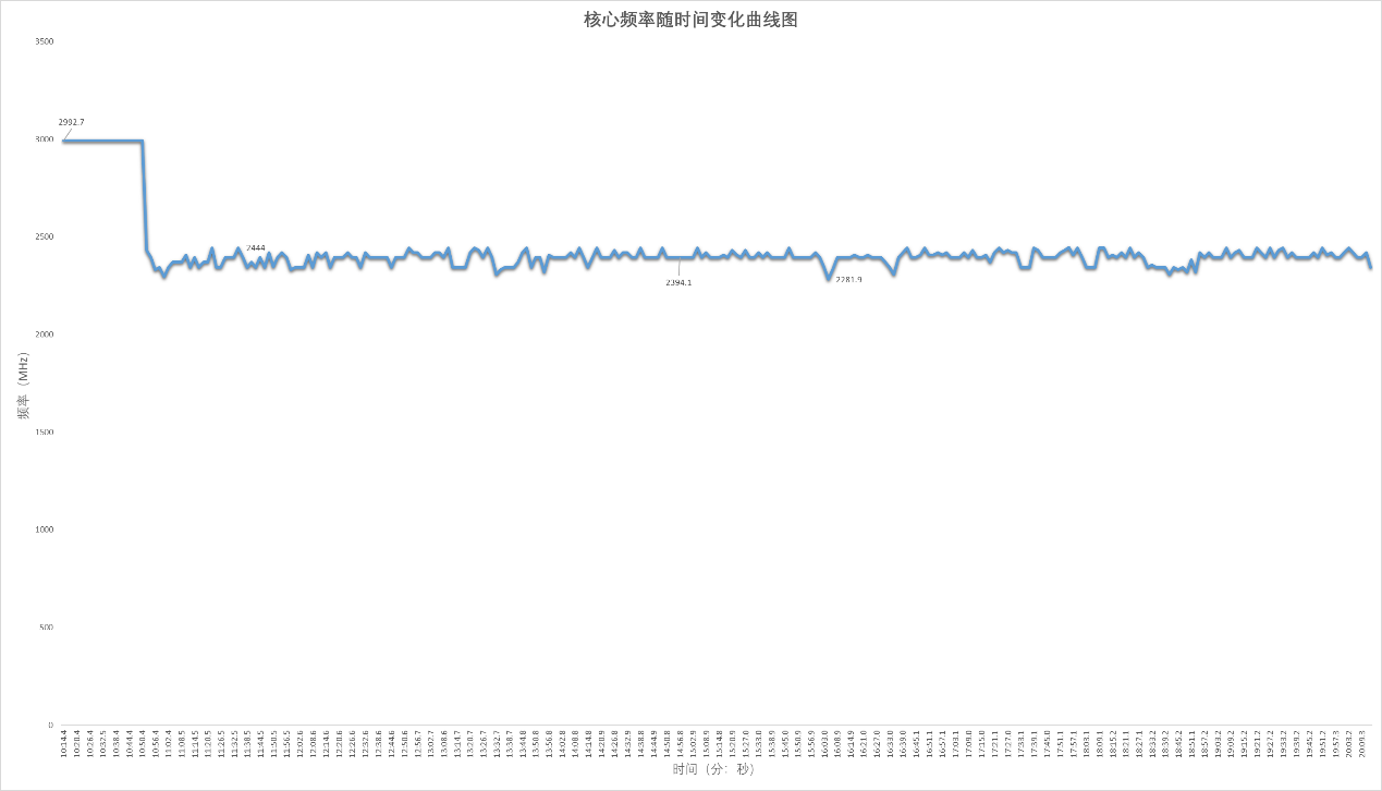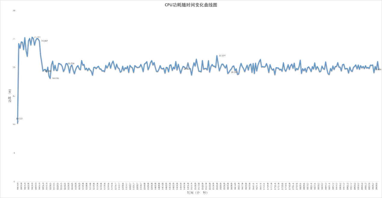 ▲CPU PL1=20W PL2=35W ,Stress FPU 10分钟;使用HWiNFO来记录CPU温度,核心频率以及CPU功耗;整个过程持续10分钟,CPU有触发功耗墙,但没有过热降频 ▲Stress FPU后CPU进入PL2阶段,核心频率维持在2.99GHz左右,40秒后进入PL阶段,此时CPU核心频率在2.28-2.44GHz波动,大部分时间维持在2.39GHz附近 ▲整个Stress FPU过程,CPU温度不超过75℃ ▲Stress FPU后CPU进入PL2阶段,CPU功耗最高可以达到25W左右,40秒后进入PL1阶段,此时CPU功耗在18-22W波动,大部分时间维持在20W附近总体来看,CPU在压力测试下的温度和功耗表现是良好的: