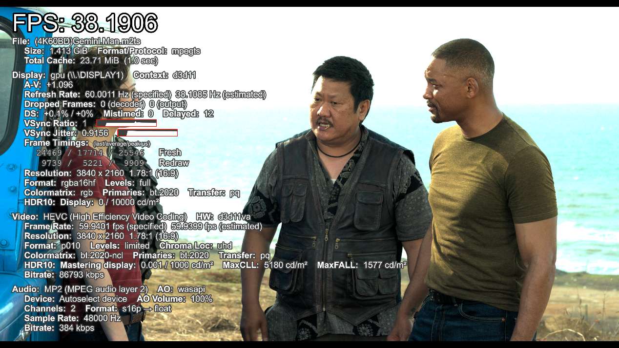 • 对于HEVC、VP9和AV1编码的4K 60fps视频,帧率均在38-46 FPS之间。这表明核显在解码4K视频时表现良好,能够流畅播放这些高分辨率视频。虽然帧率没有达到60 FPS,但对于大多数观看场景来说,这样的帧率已经足够流畅