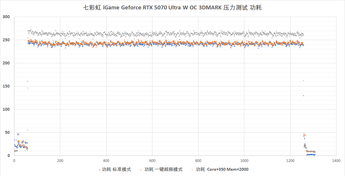 功耗方面标准模式和一键超频模式均控制在250W以下,手动超频模式可以将功耗上拉到260-270W这个区间。