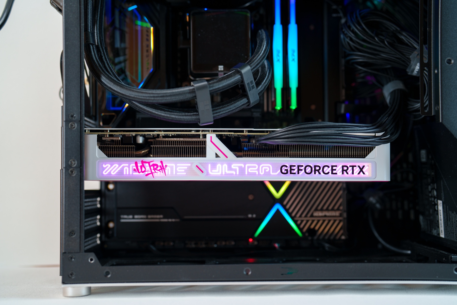 白色的显卡其实非常的百搭,即使在黑色的机箱中,搭配上RGB灯光效果也变得毫无违和感