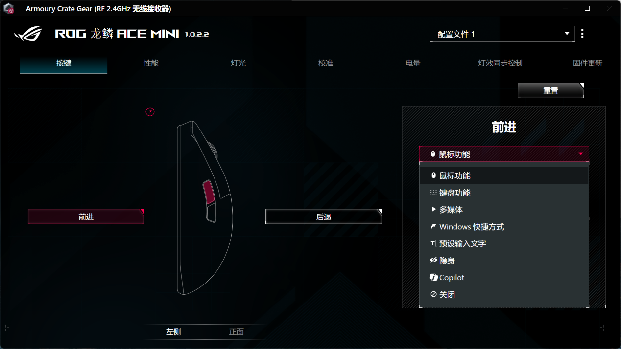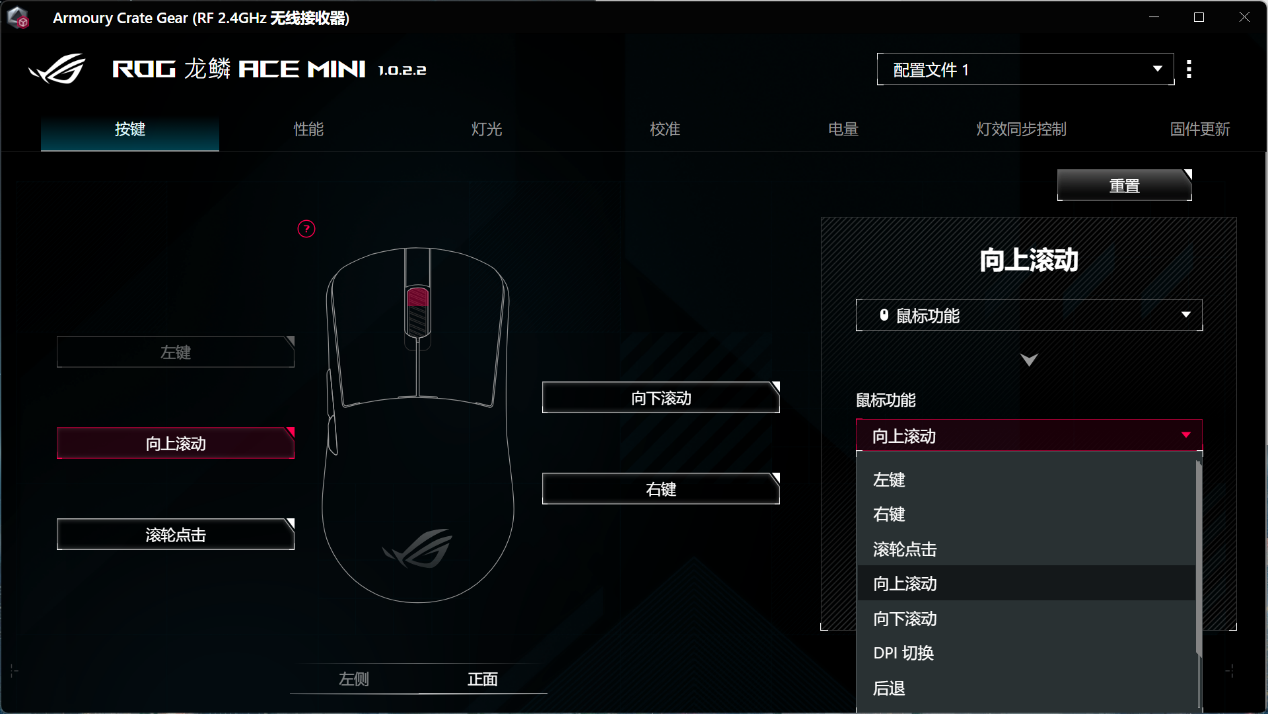 ▲进入软件后会提示更新固件,首先将固件更新至最新以获取最新功能 ▲可以自由的对鼠标的每一个按键进行自定义功能1.灵敏度(DPI 设置)