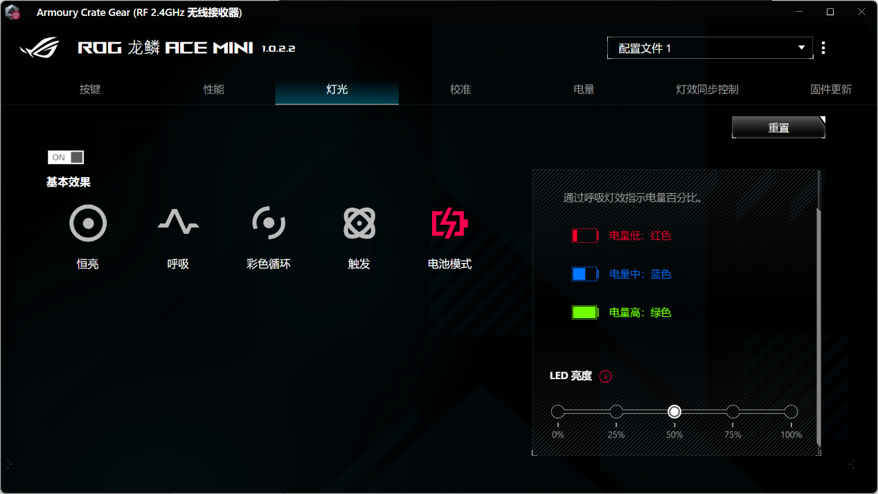 电池模式:灯光效果与鼠标电池电量相关,通过灯光颜色或闪烁提示电量状态