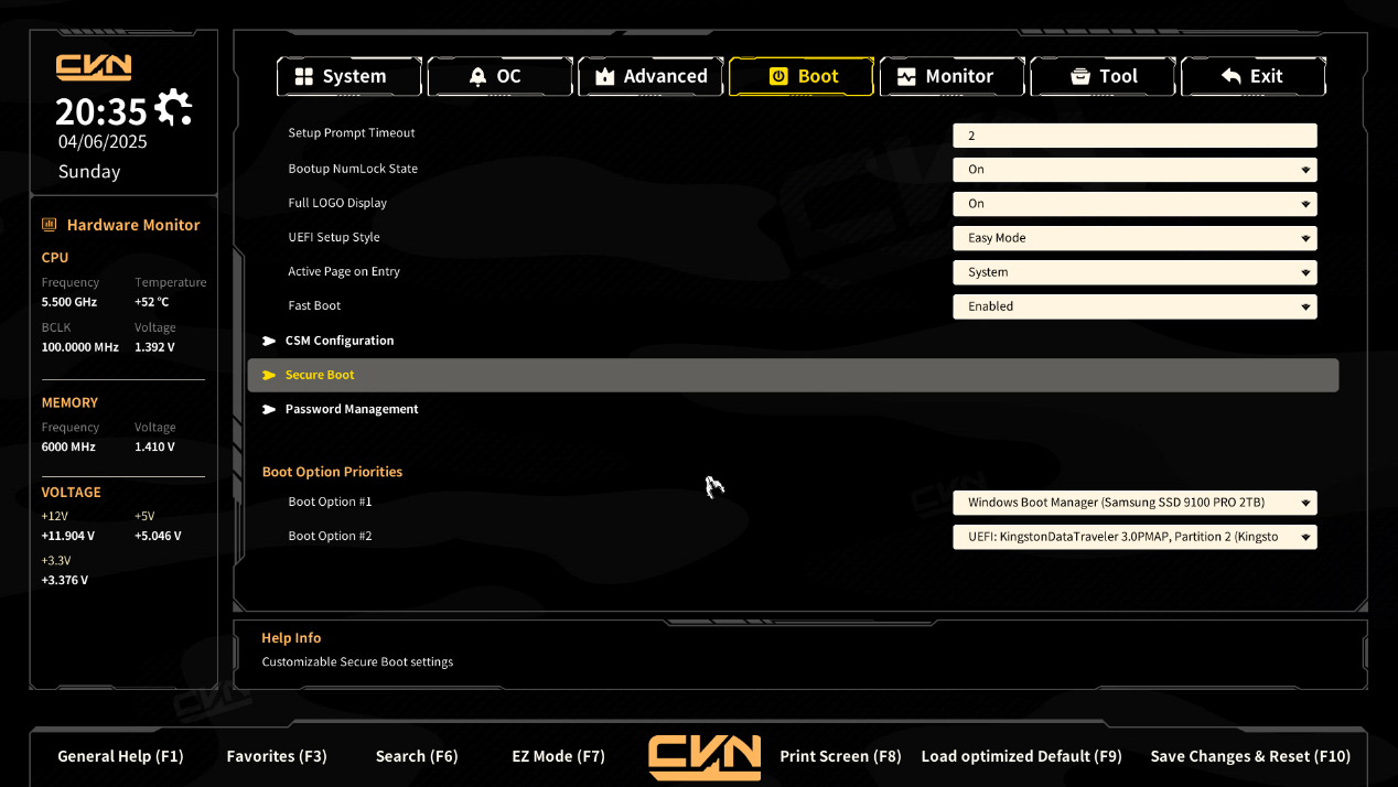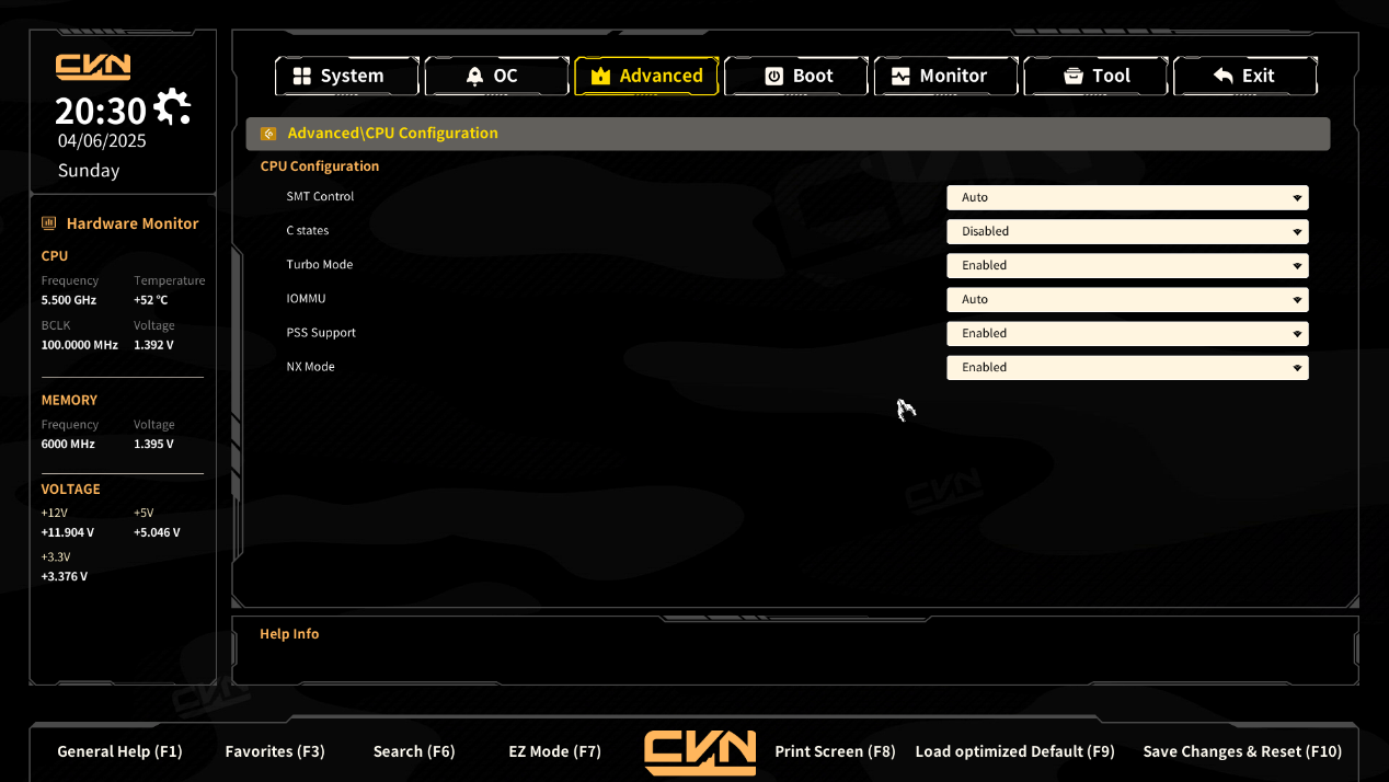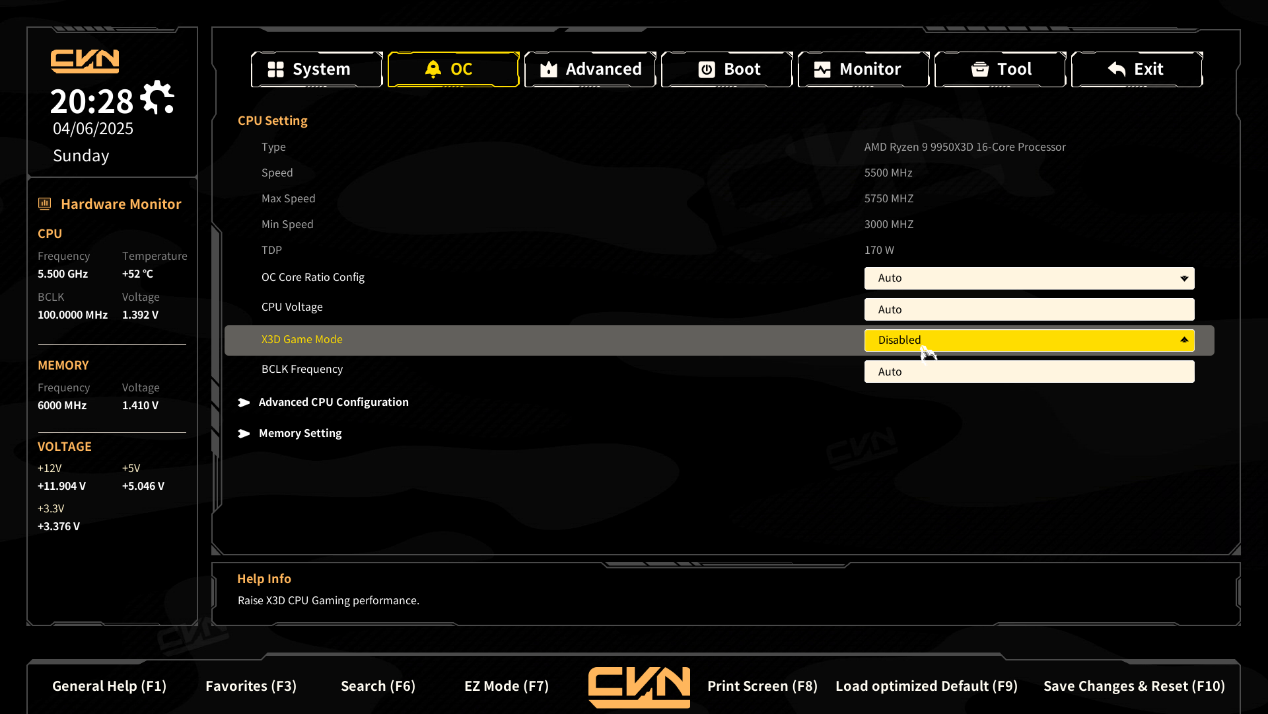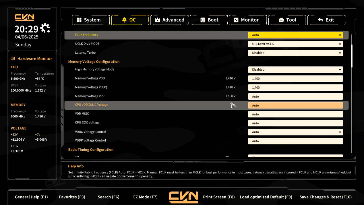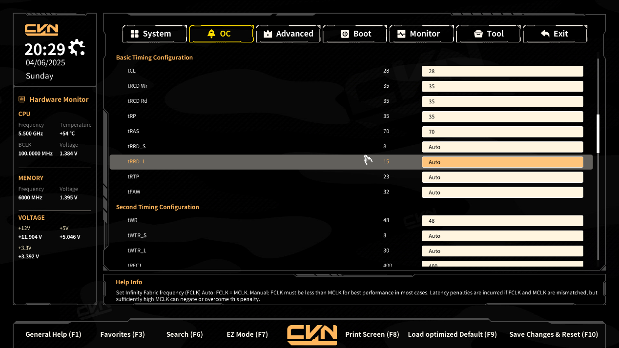 - Memory Frequency:设置内存的运行频率。当前值:6000 MHz,较高的频率可以提升内存性能,但需要确保内存和主板支持