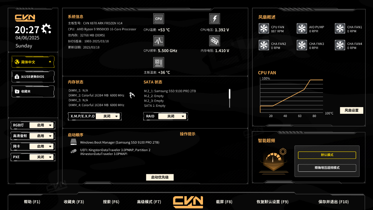 随着AMD Ryzen 9000系列处理器的发布,高端主板市场的竞争愈发激烈。七彩虹CVN X870 ARK FROZEN V14方舟主板以"全电竞配置"为核心理念,将军工元素与星舰概念深度融合,是一款集成个性与性能的全电竞主板