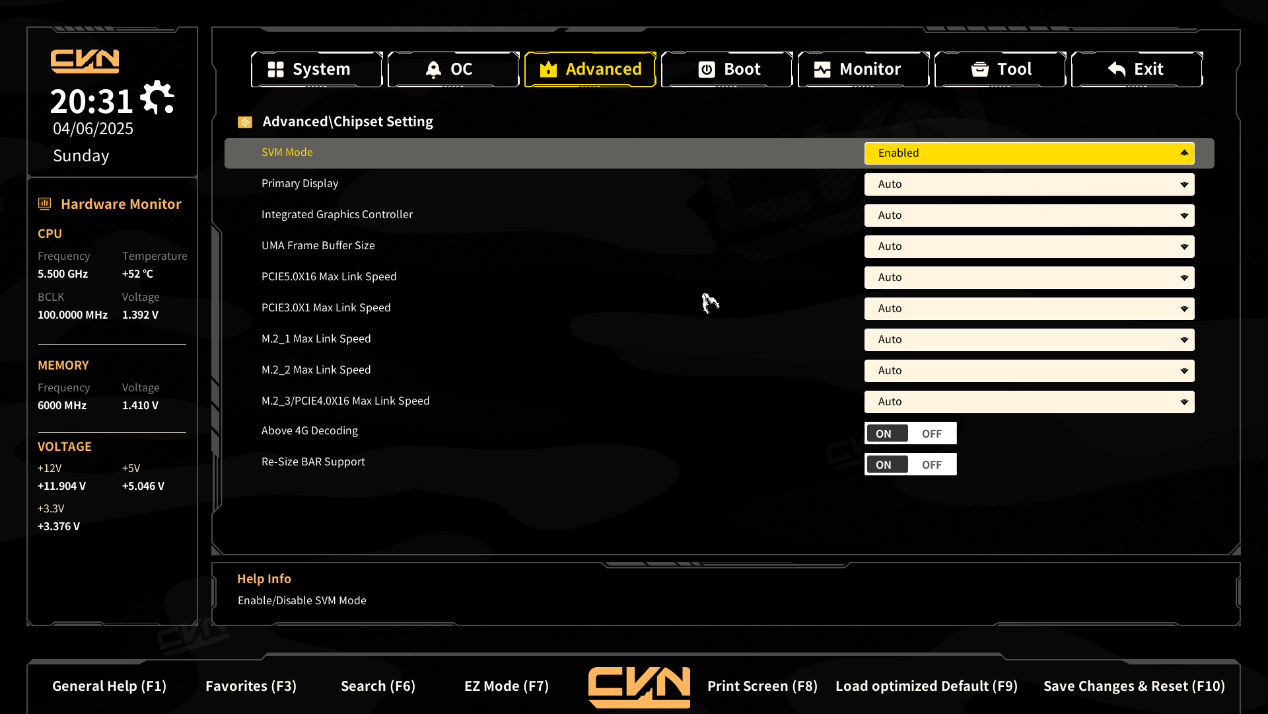 - Above 4G Decoding:启用或禁用Above 4G解码,允许PCIe设备使用超过4GB的内存地址