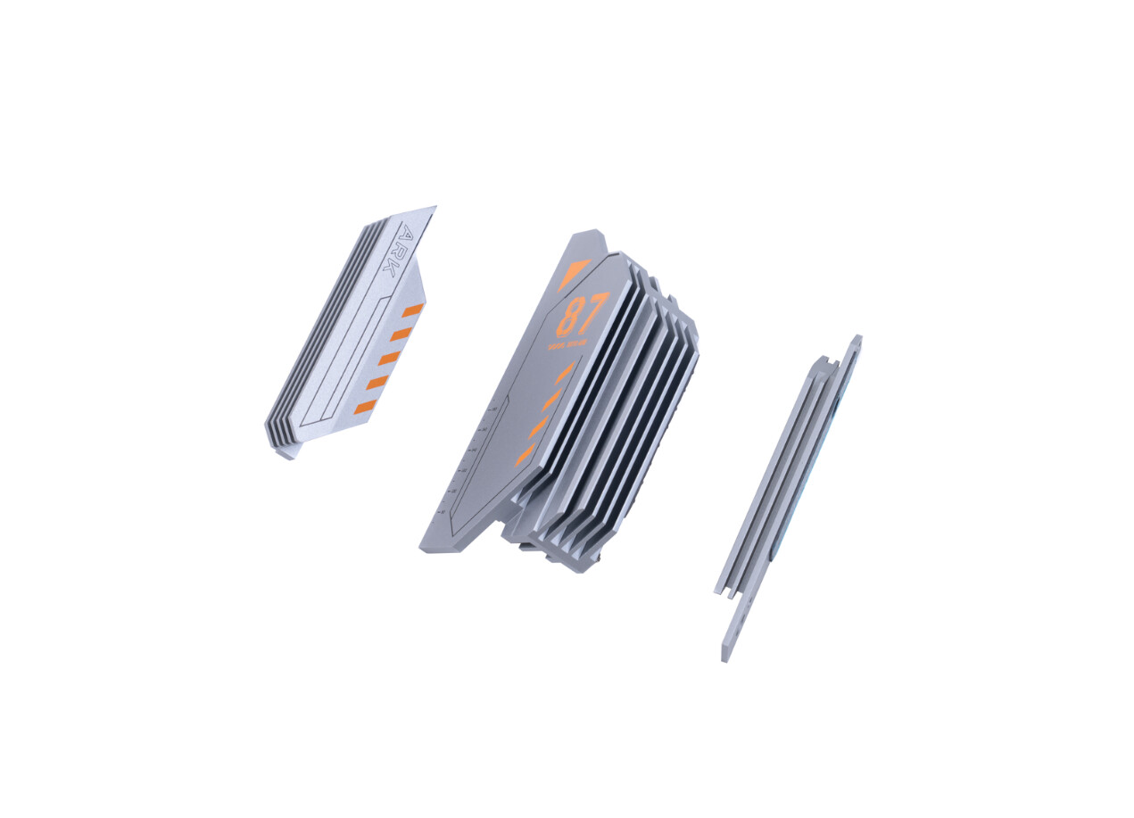 ▲X870方舟是CVN系列的旗舰型号,延续了该系列的“舷号”元素与金属质感,为玩家们带 来了极具个性的星舰风格。钛灰色寒霜散的热装甲覆盖所有的供电区域以及固态硬盘,不仅增强散热,更展现主板独特的个性设计外观设计:冷峻星舰,颜值即正义