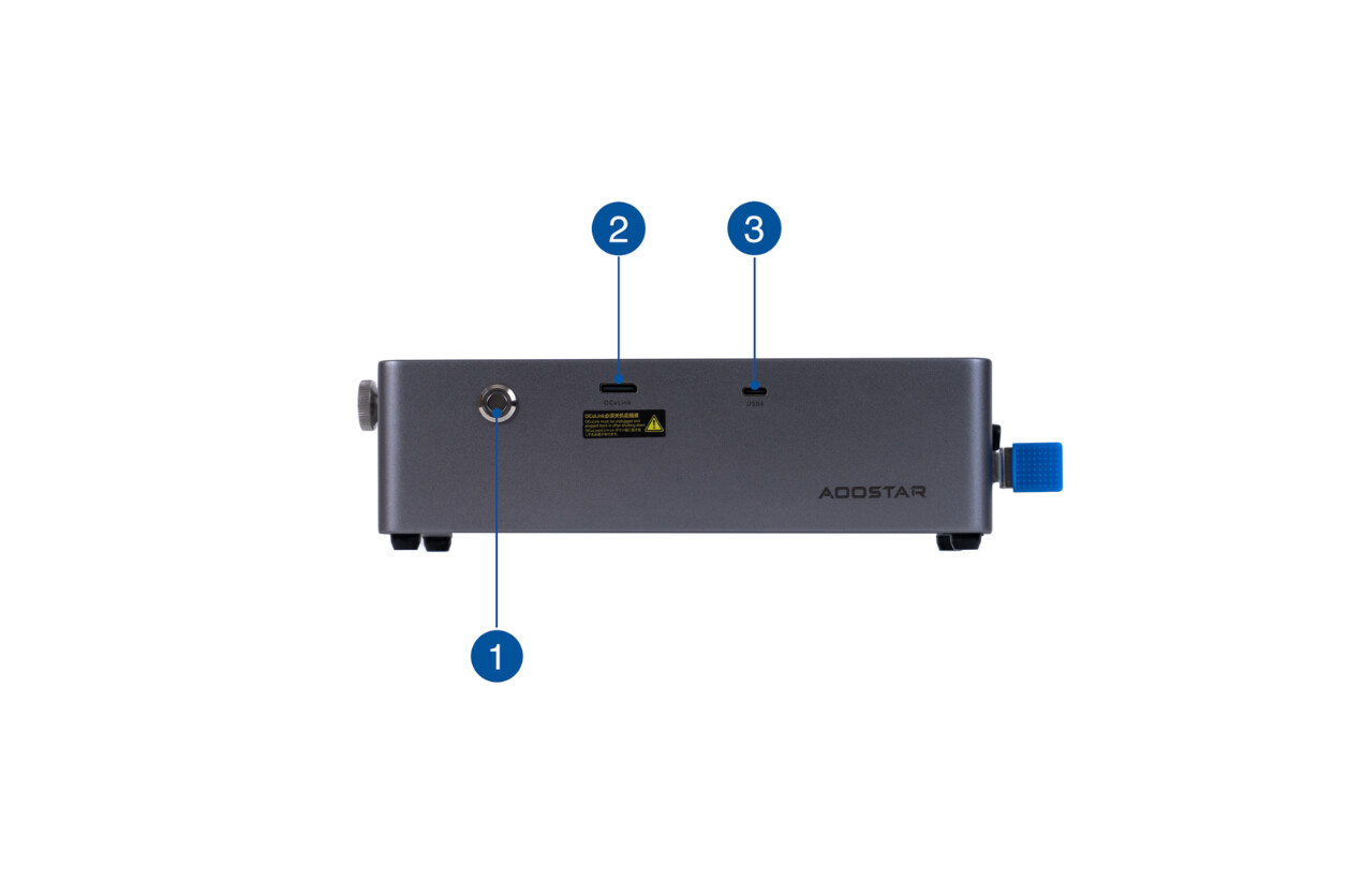 ▲天钡AG02正面一览。1.带 LED 灯的电源按钮