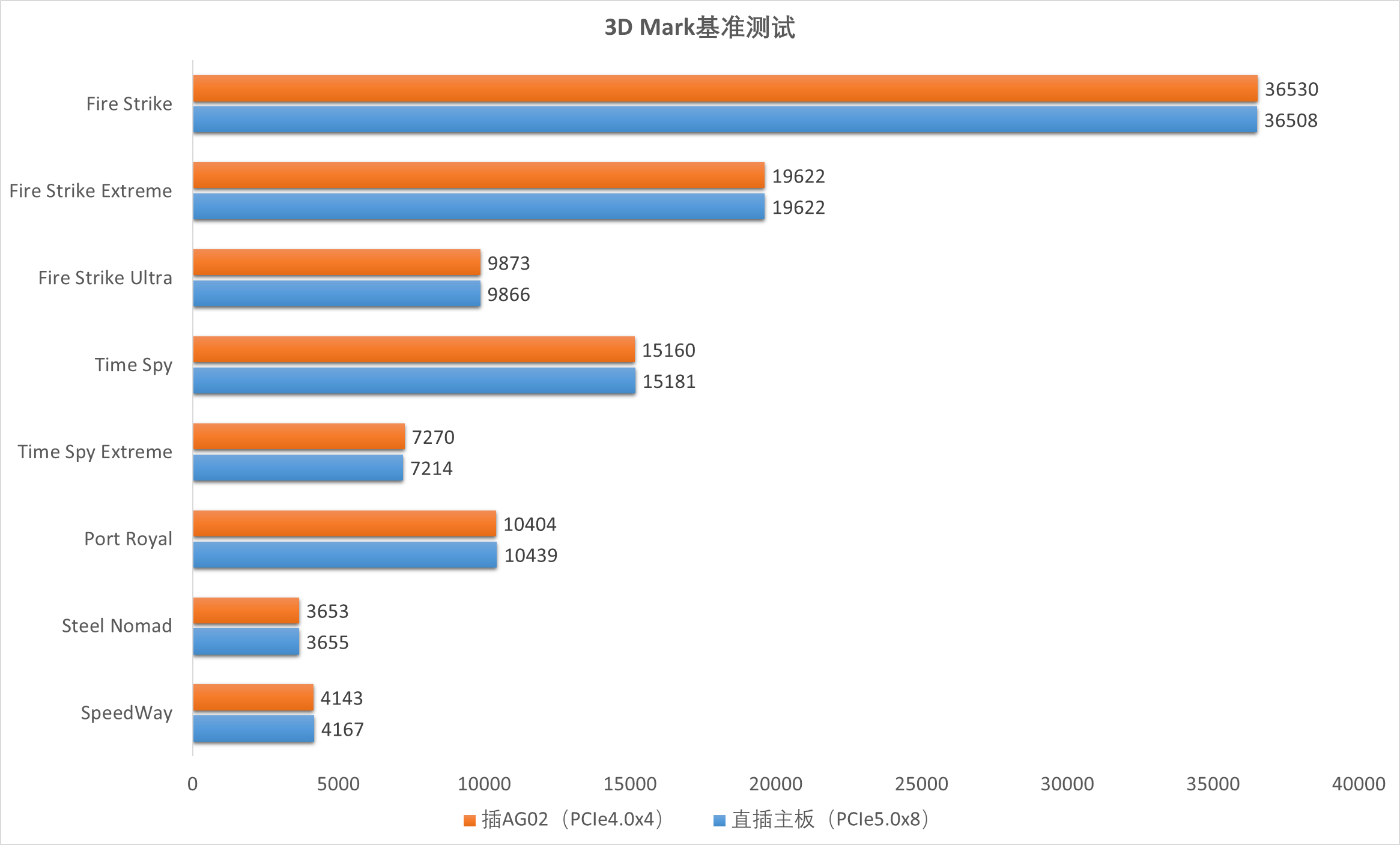 ▲3DMark Speed Way测试分数为4143 ▲3DMark Steel Nomad测试分数为3653 ▲3DMark Port Royal测试分数为10404 ▲3DMark Time Spy Extreme分数7270,显卡分数7485,CPU分数6253 ▲3DMark Time Spy分数15160,显卡分数16169,CPU分数11201 ▲3DMark Fire Strike Ultra分数9873,显卡分数9661,物理分数31046,综合分数5315 ▲3DMark Fire Strike Extreme分数19622,显卡分数20587,物理分数31123,综合分数10297 ▲3DMark Fire Strike分数36530,显卡分数41534,物理分数30925,综合分数22391 ▲PCIe5.0x8 和 PCIe4.0x4 在不同测试项目中的性能表现非常接近,仅有一些细微的差异。在所有测试项目中,PCIe5.0x8 和 PCIe4.0x4 的性能差异几乎可以忽略不计,说明显卡的性能瓶颈主要在于其计算能力,而不是 PCIe 带宽。PCIe4.0x4已经能发挥RTX5060Ti的性能总结