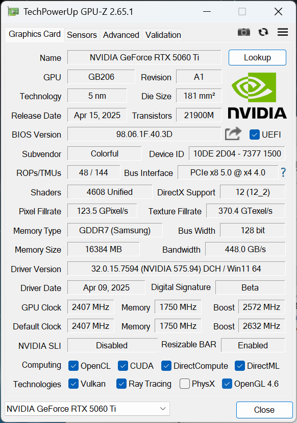 - 在实际测试中,PCIe4.0x4 已经能够充分发挥 RTX 5060 Ti 的性能,证明其接口设计完全满足当前中高端显卡的需求。
