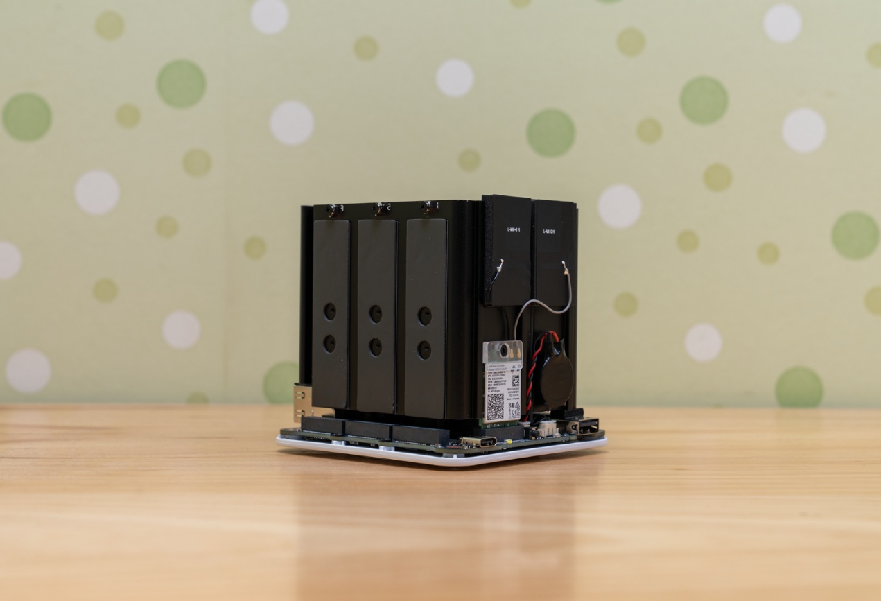 ▲零刻 ME mini 6 盘位固态 NAS 迷你主机的内部设计也极具特色,采用垂直风道,能有效提升散热效率,避免因长时间运行导致设备过热。整体机身小巧玲珑,相比传统的 NAS 设备,体积大幅缩小,不占过多空间,无论是放置在桌面还是收纳在机柜中都十分合适外观设计:小巧精致,简约时尚