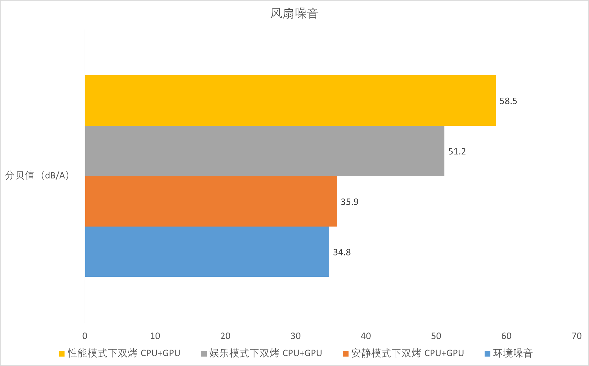 - 娱乐模式:噪音为51.2dB(A),虽有明显提升,但在游戏或影音娱乐中可接受,可兼顾散热与一定静音效果。