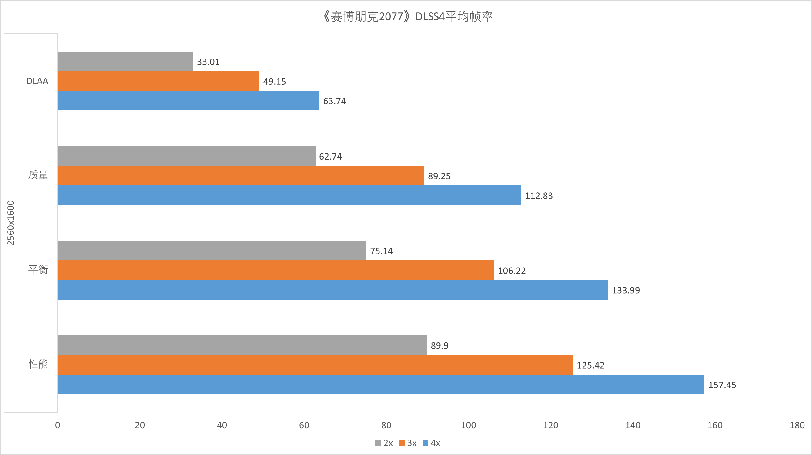 ▲《赛博朋克2077》开启DLSS,Transformer模型,2560x1600分辨率,开启包括光线追踪在内的全部特效,并切换不同档位的DLSS。- 画质优先型玩家:质量模式在提供接近DLAA模式画质的同时,帧率显著提升,能够兼顾画质与流畅度,是画质优先型玩家的较优选择。