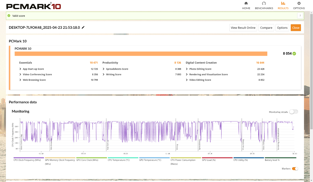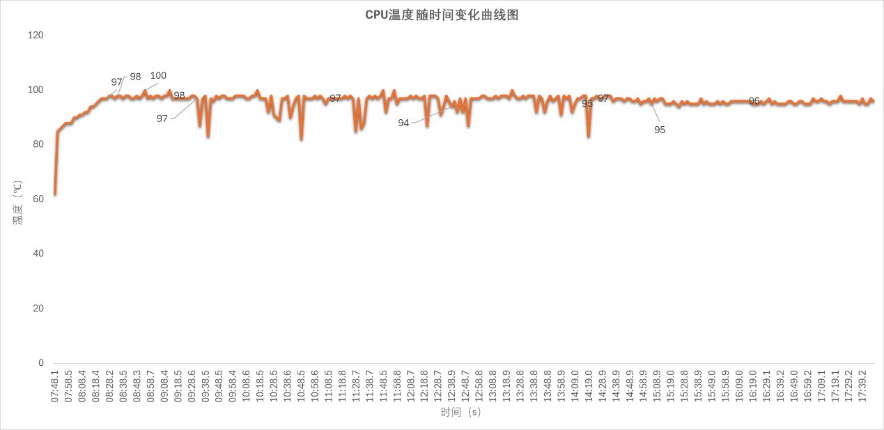 - CPU在双烤过程中温度波动较大且峰值较高(87℃),CPU在散热时可能受到了GPU散热影响,CPU在不断进行动态频率调节以平衡性能和功耗。