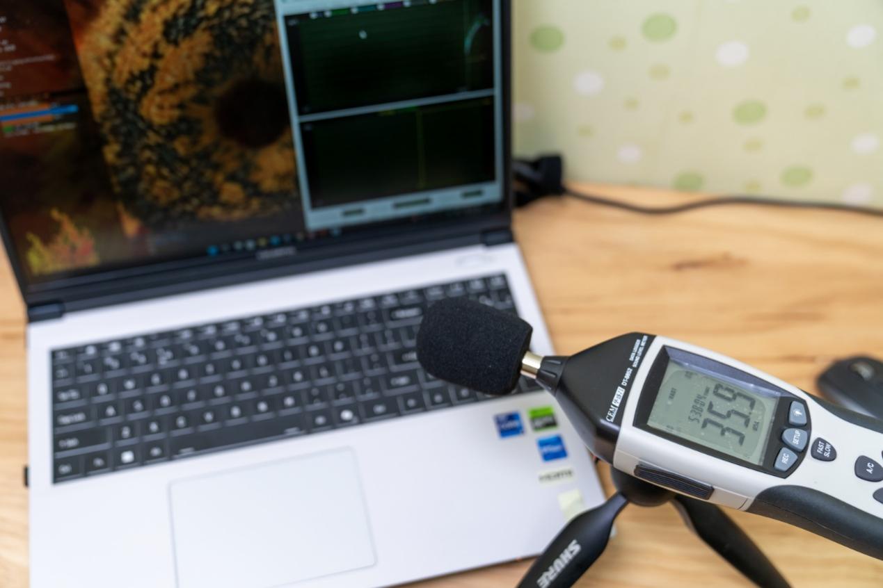 ▲环境噪音在34.8dB左右 ▲安静模式下双烤CPU+GPU;风扇噪音在35.9dB左右 ▲娱乐模式下双烤CPU+GPU;风扇噪音在51.2dB左右 ▲性能模式下双烤CPU+GPU;风扇噪音在58.5dB左右- 安静模式:噪音仅比环境噪音高1.1dB(A),运行静音且散热稳定,适合日常办公或轻度娱乐。