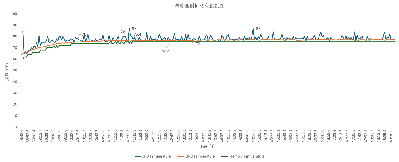 - GPU和显存的温度相对稳定且较低,尤其GPU温度波动较小,笔记本整体散热设计优先考虑GPU,确保GPU能够有效应对高负载。