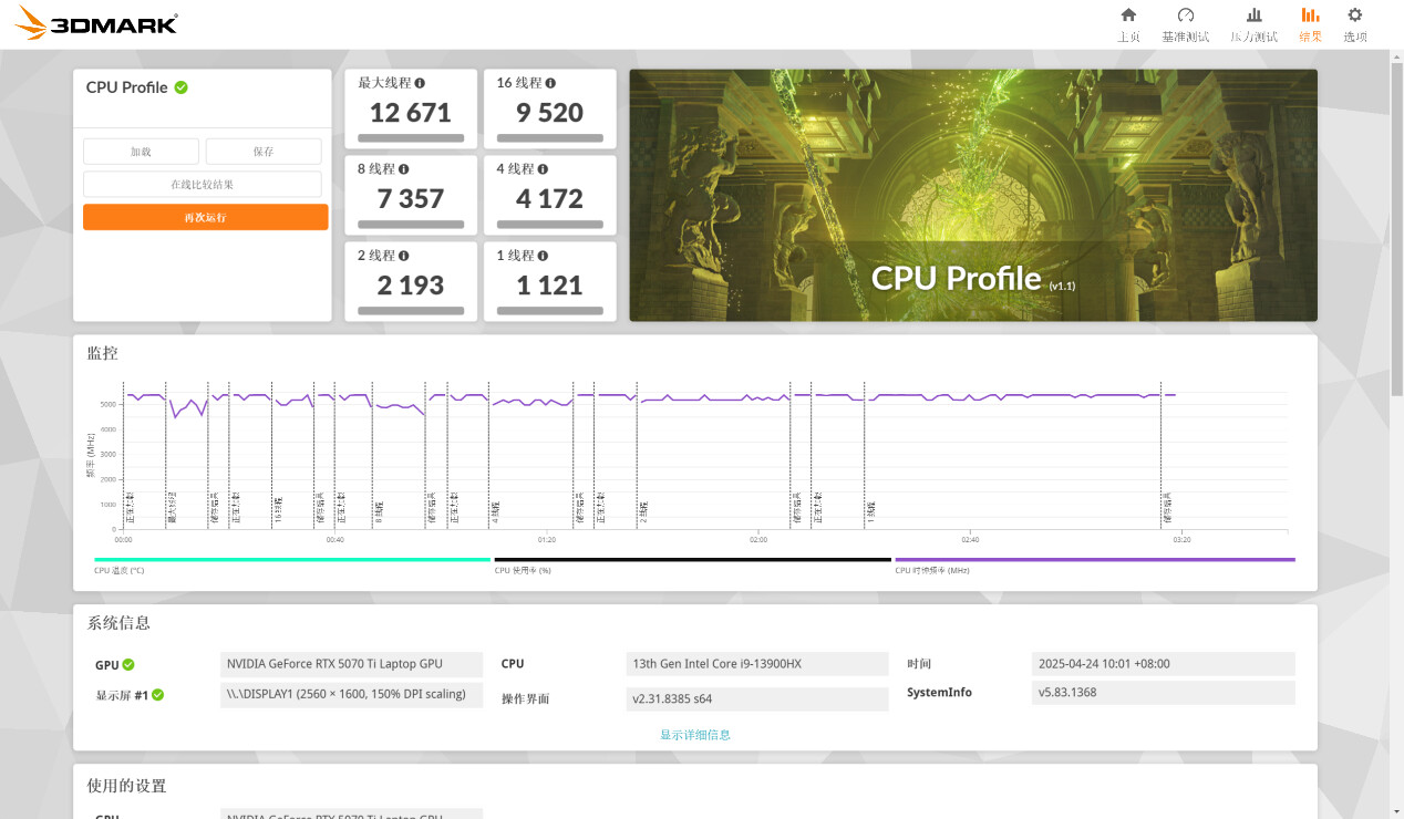 性能测试:i9-13900HX与满功耗RTX 5070 Ti Laptop GPU的极限碰撞