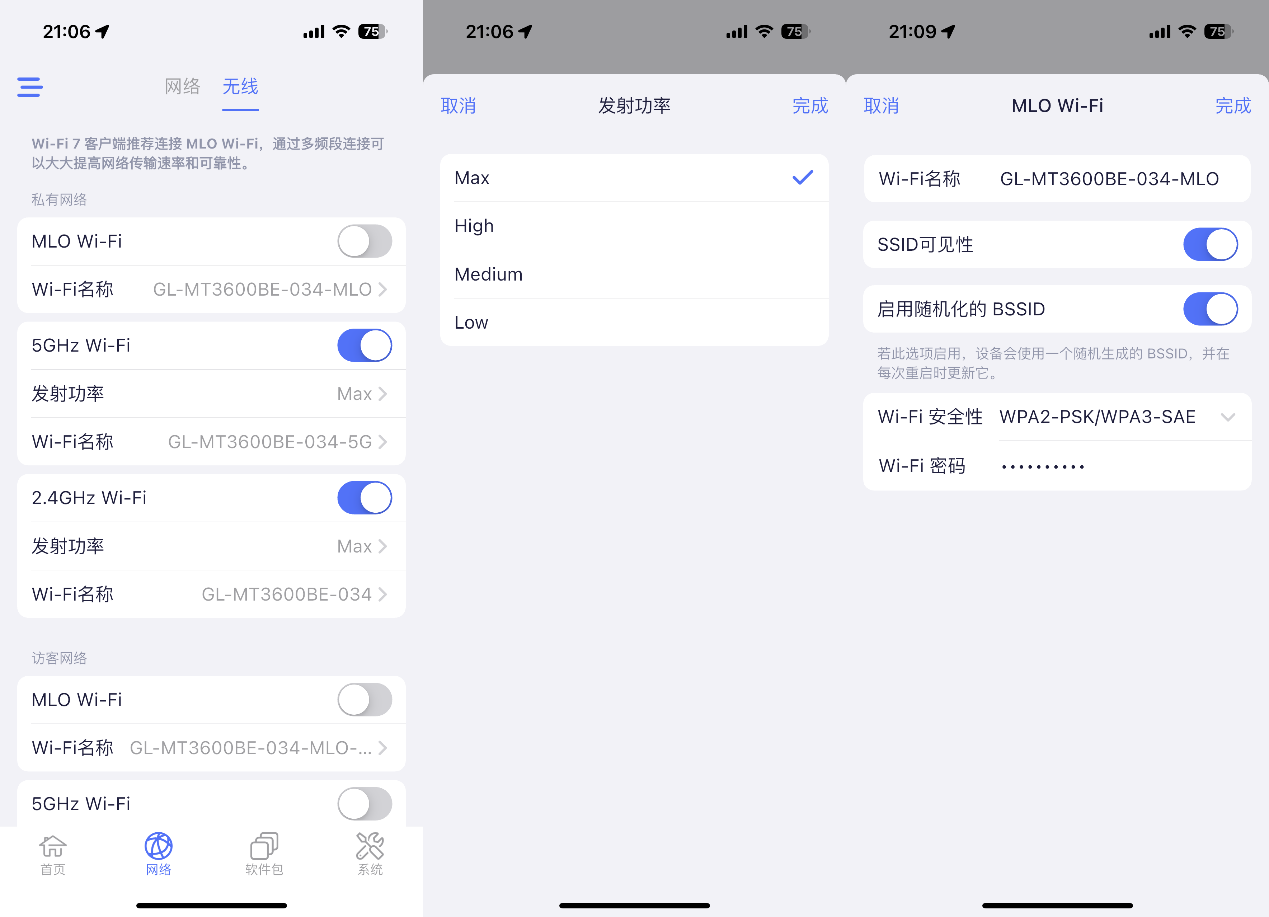 ▲可以对2.4G和5G的WiFi名称和发射功率进行更改,默认无线发射功率为MAX最强。MLO可以充分利用2.4G+5G两个频段的带宽资源,避免了传统单频连接中一个频段闲置的情况,提高了网络资源的利用率。