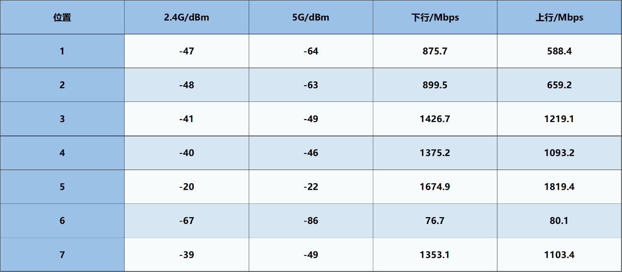▲路由器在近距离(如5号位置)的表现非常优秀,下行和上行速度都很高。GL-MT3600BE 作为一台便携式路由器,大部分旅差用户面临的环境也就是酒店同房间内使用。此时 GL-MT3600BE 表现出出色的高速传输稳定性,完全能满足旅差中高清视频播放、大文件传输等高频网络需求。即使在信号较弱(5G 脱网)的区域(如6号位置),使用2.4G上下行速度仍能达到 80Mbps,足以支撑基础的办公上网、社交通讯等日常需求。