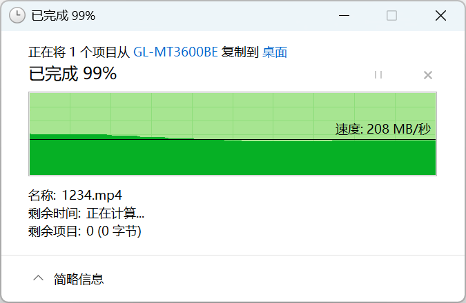 ▲2.5G LAN口有线读取速度208MB/S。