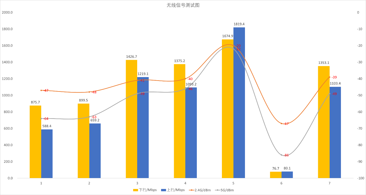 ▲7号位置处2.4G、5G信号强度以及Speedtest测试。