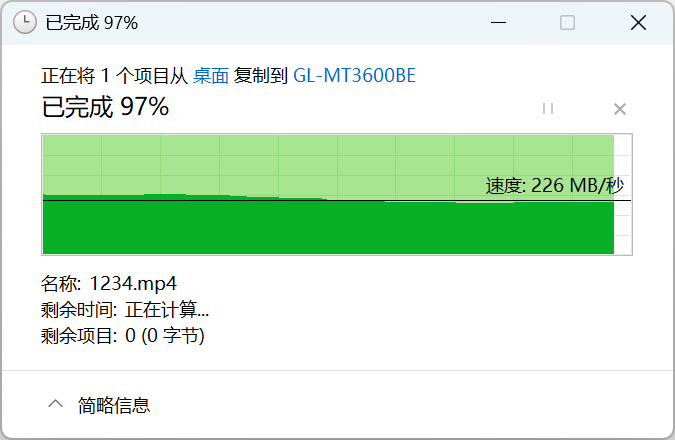 ▲2.5G LAN口有线写入速度226MB/S。