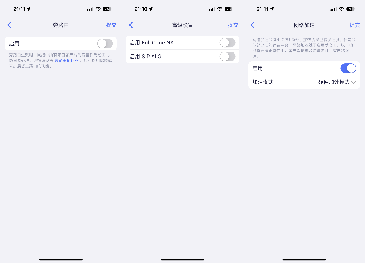 ▲还可以将Beryl 7 GL-MT3600BE配置为旁路由来实现一些特殊的功能,支持硬件加速和Full Cone NAT。