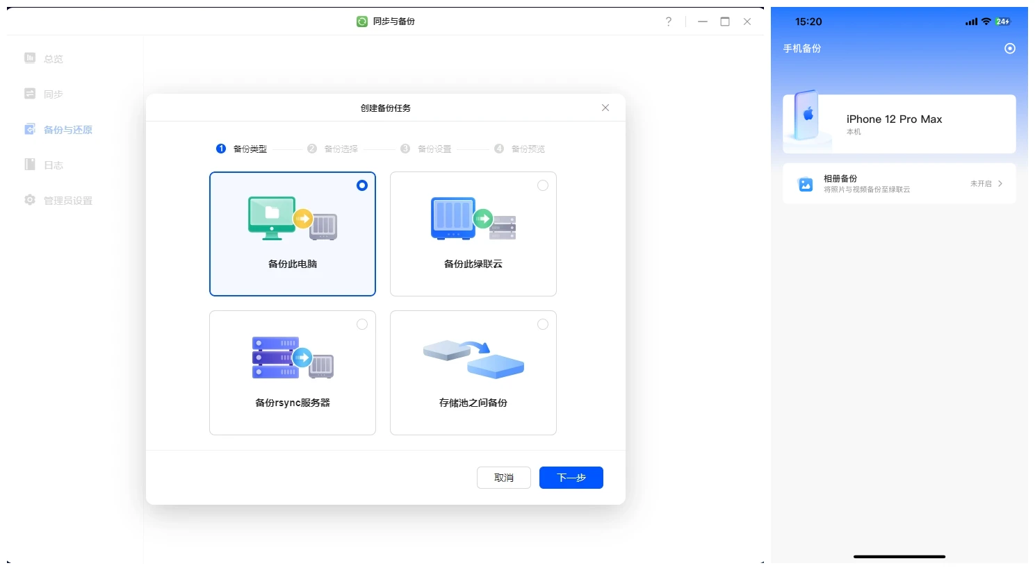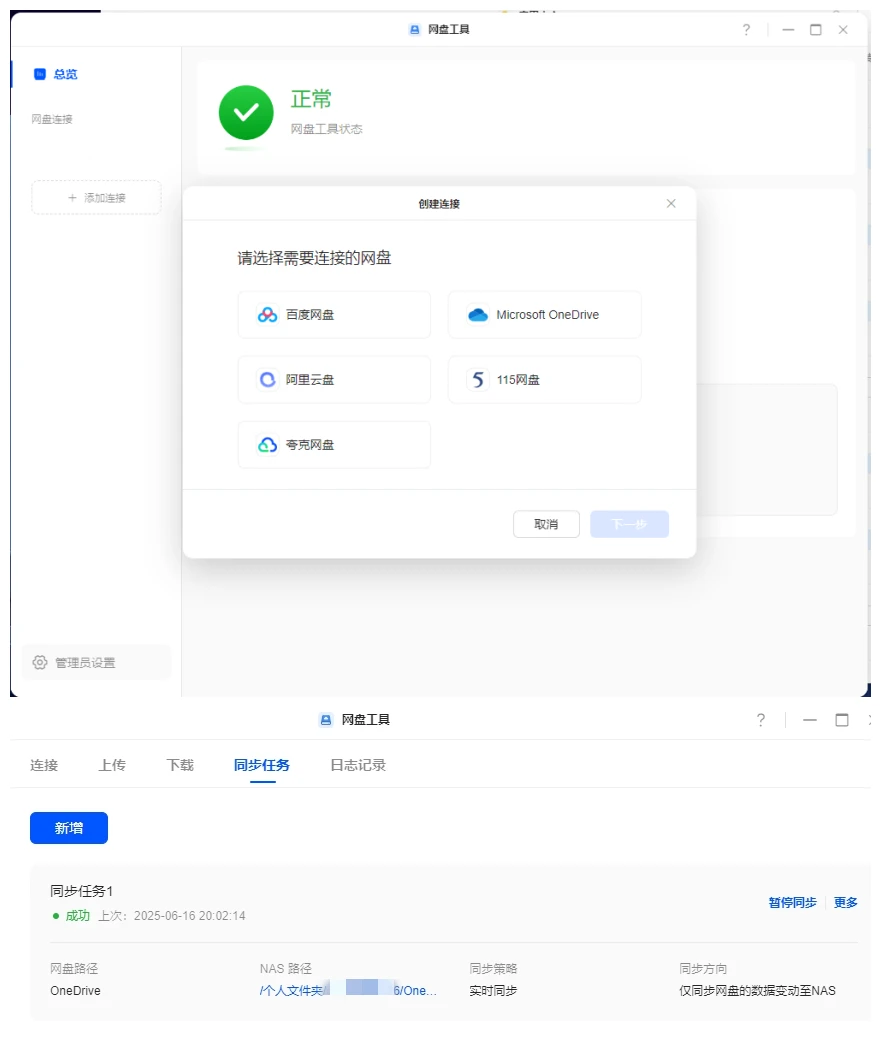 同步模式包括双向同步,仅上传,仅下载。