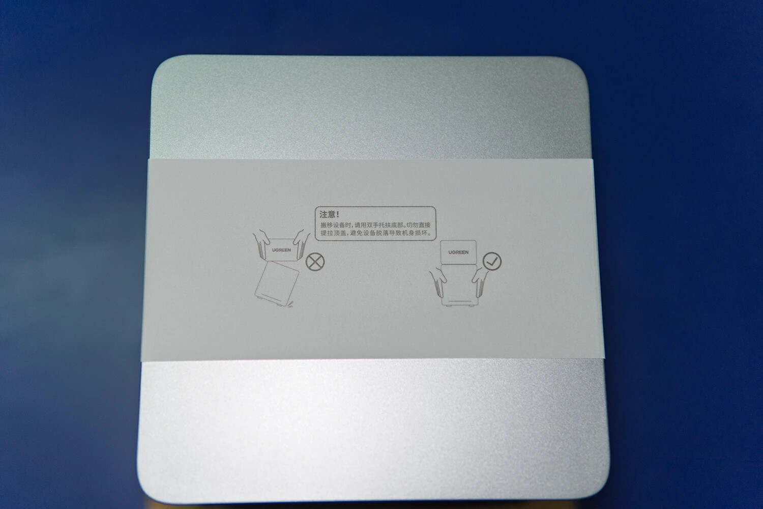 一体化磁吸式仓盖(四角内置磁铁),开合便捷且吸附牢固,顶部印有绿联云APP下载二维码