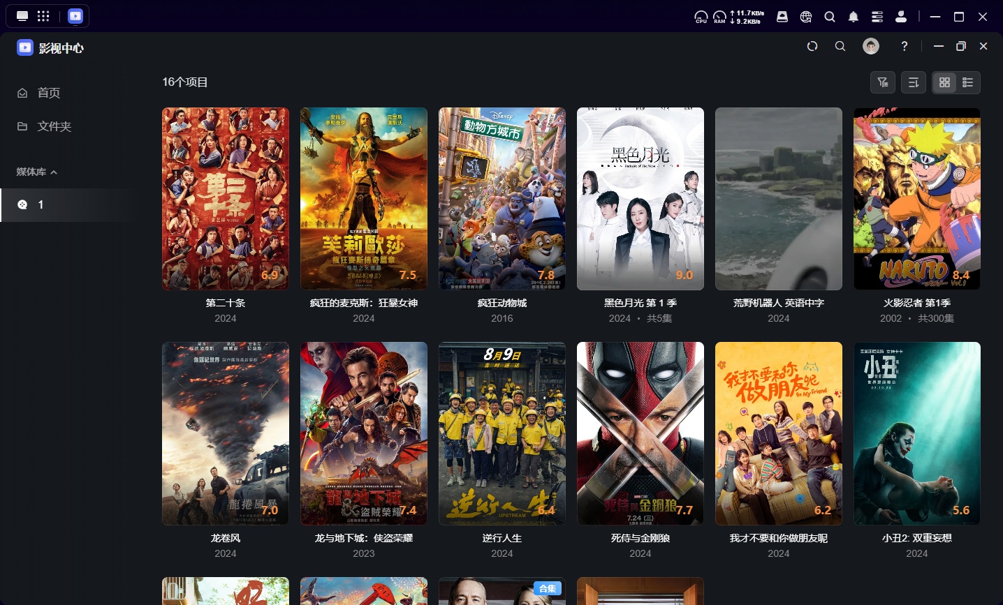 内置TMDB数据库,拖入影片自动生成海报墙(含评分/演员信息)。海报墙的水平在目前市面上已经是第一梯队了,完全可以媲美emby(当然你也可以使用Docker安装emby使用)