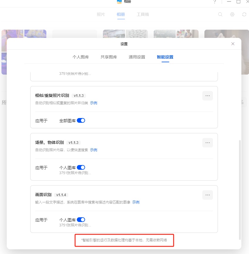 目前ARM版的相册只能使用自带的模型,不能自己训练。