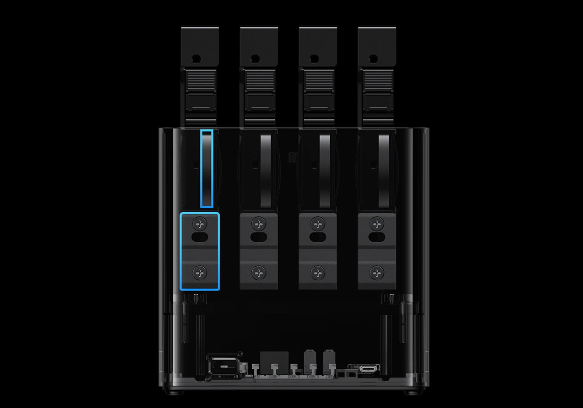 同样不同于DX系列的硬盘免工具拆装设计,绿联DH4300 Plus的硬盘支架是需要拧螺丝来固定的。