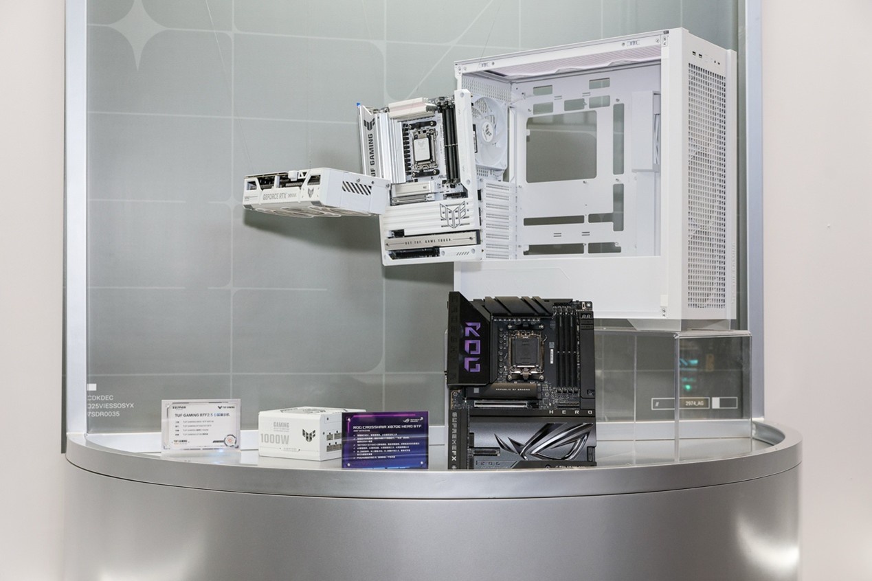 BW2025“背显神装”区域同样热度不俗,这里陈列了多款华硕BTF背置产品。包括首款AMD平台ROG背置主板——ROG CROSSHAIR X870E HERO BTF、TUF GAMING B850-BTF WIFI W,以及ROG MAXIMUS Z890 HERO BTF的整机等,吸引了无数参观者的目光。