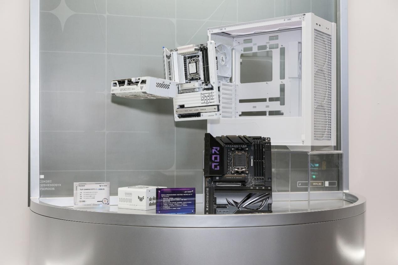 除了发布会上的两款为次元玩家打造的X870主板外,现场ROG展台还特别展示了首款AMD平台ROG背置主板——ROG CROSSHAIR X870E HERO BTF。拥有背置接口设计和背置显卡供电插槽,提供600W+电能,减少正面线材,美观易理线,小白装机轻松上手。近乎全覆盖的金属装甲,加上Polymo动态灯效2.0,让颜值再提升。采用18(110A)+2(110A)+2供电模组,搭配混合双模超频,轻松驾驭AMD锐龙9000系处理器。再度给大家扩充BTF背置系列产品阵容,满足大家所需。
