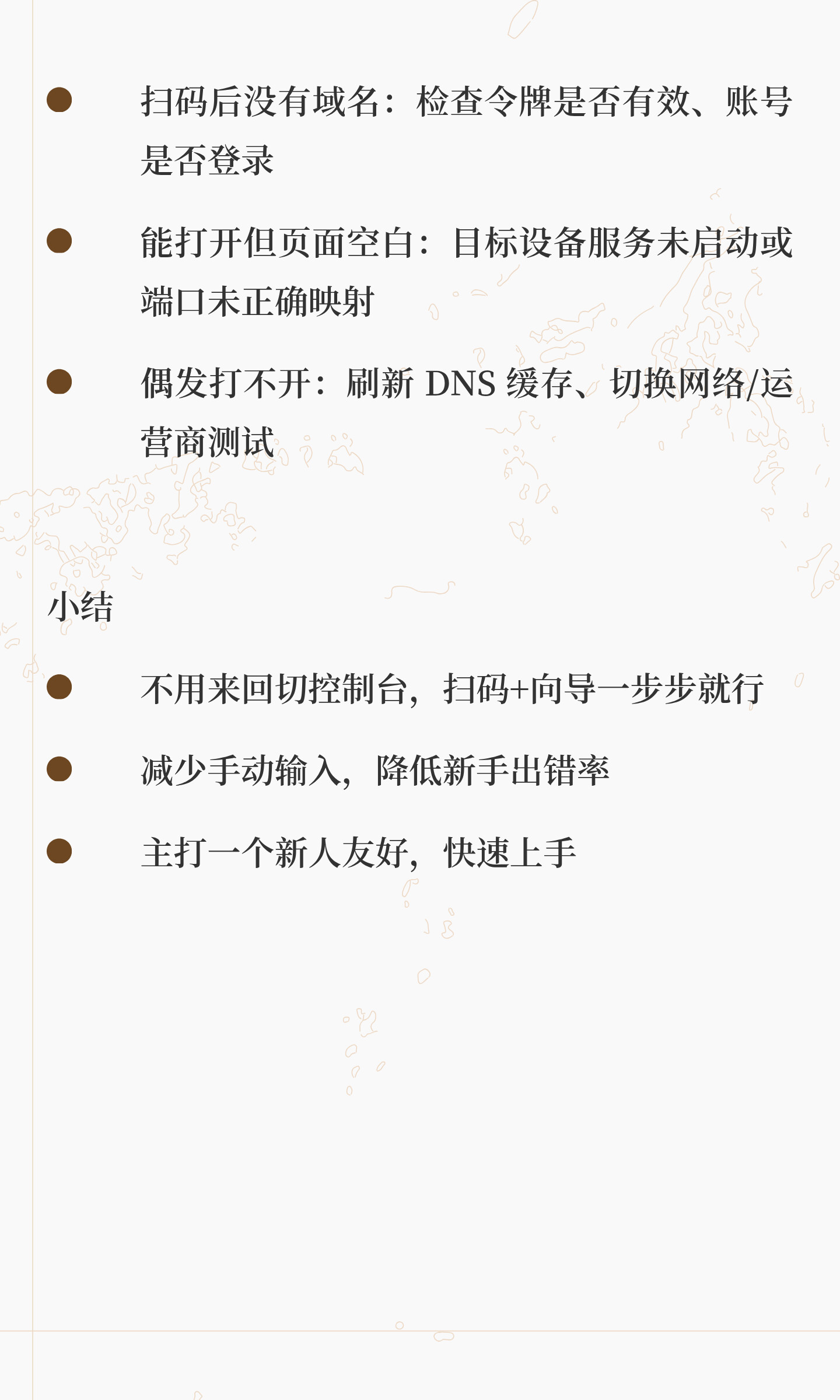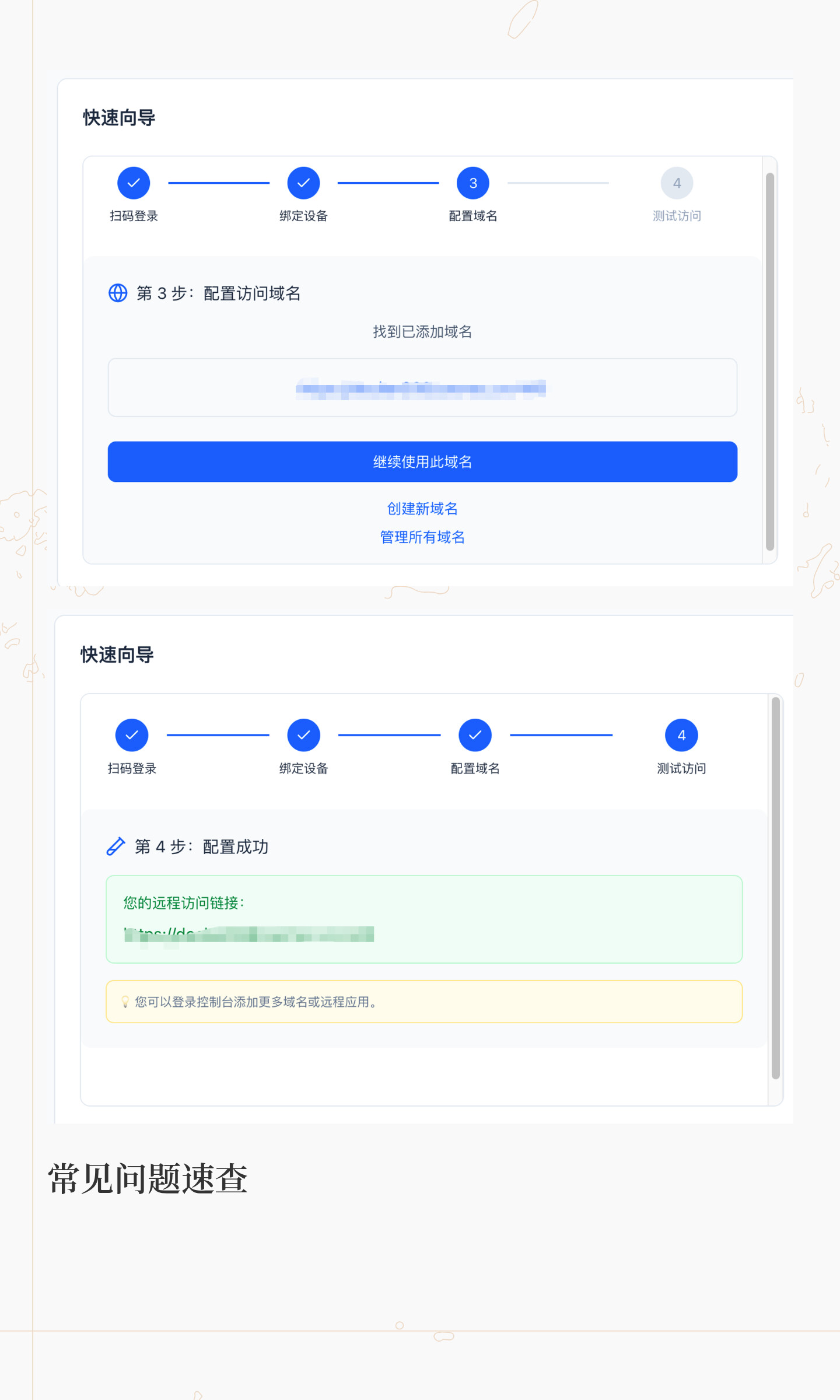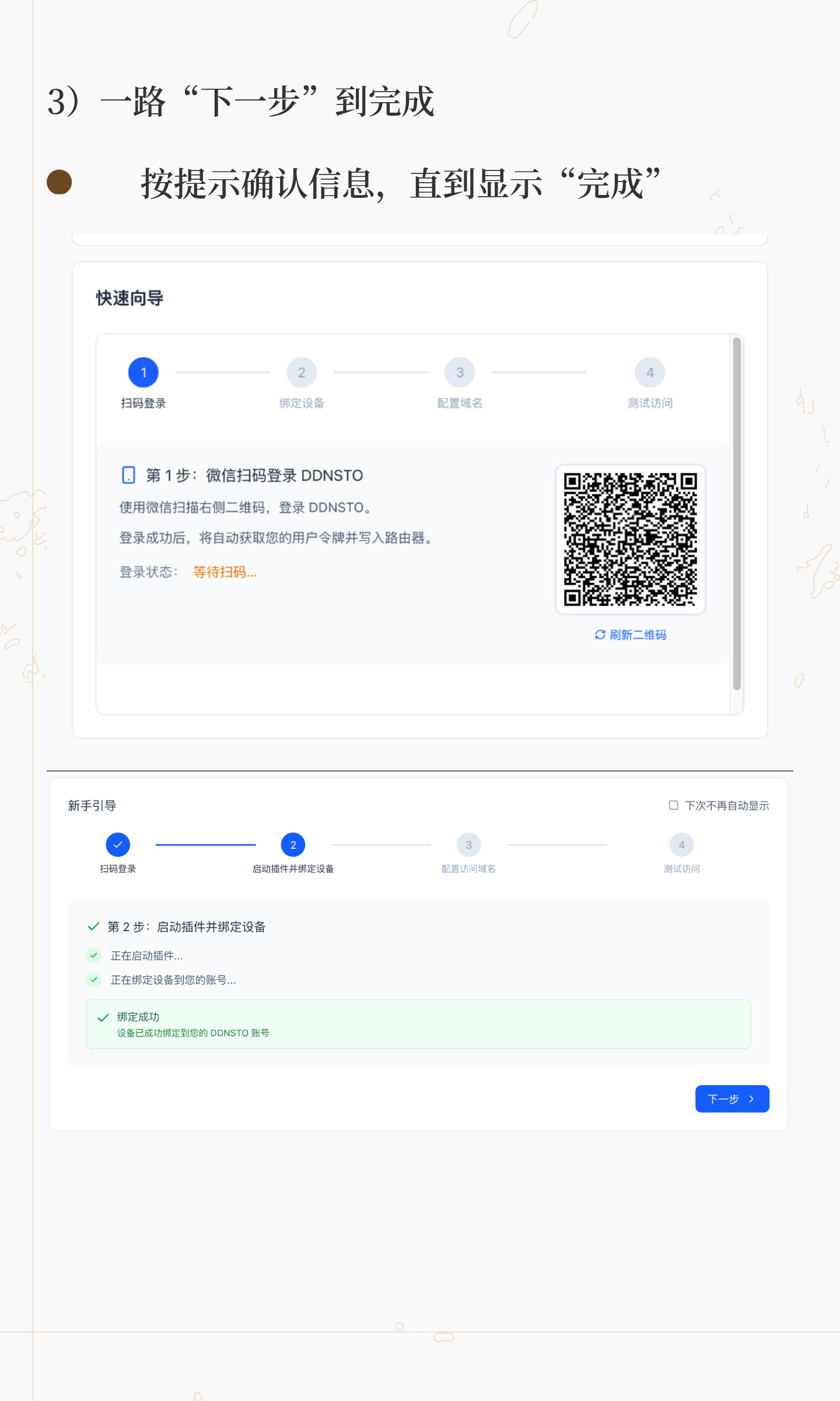 无需手动切换控制台,扫码 + 向导指引,一步步操作即可完成