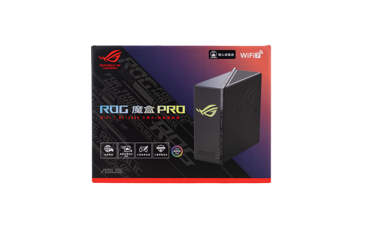 对于追求毫秒级响应的硬核玩家、需要多设备同时高速运行的家庭用户而言,一款能突破速度桎梏、智能分配资源的旗舰路由器,是提升体验的关键所在。我们上次评测了华硕的ROG魔盒,它不仅是一台全能型网络中枢,更通过智能化管理功能重新定义了用户体验,引领着未来网络技术的演进方向。本次聚焦它的进阶机型—华硕ROG魔盒Pro,它是集尖端技术与电竞基因于一身的匠心之作,作为搭载三频WiFi7、配备8个满血2.5G网口矩阵的旗舰机型,它不仅将无线速率推向12000Mbps的新高度,更通过三段式电竞加速、WiFi 7多链路聚合(MLO)、新一代Aimesh随心组网等创新技术,重新定义了电竞网络的低延迟标准,构建起覆盖游戏、智能家居、远程办公等全场景的高效网络生态。